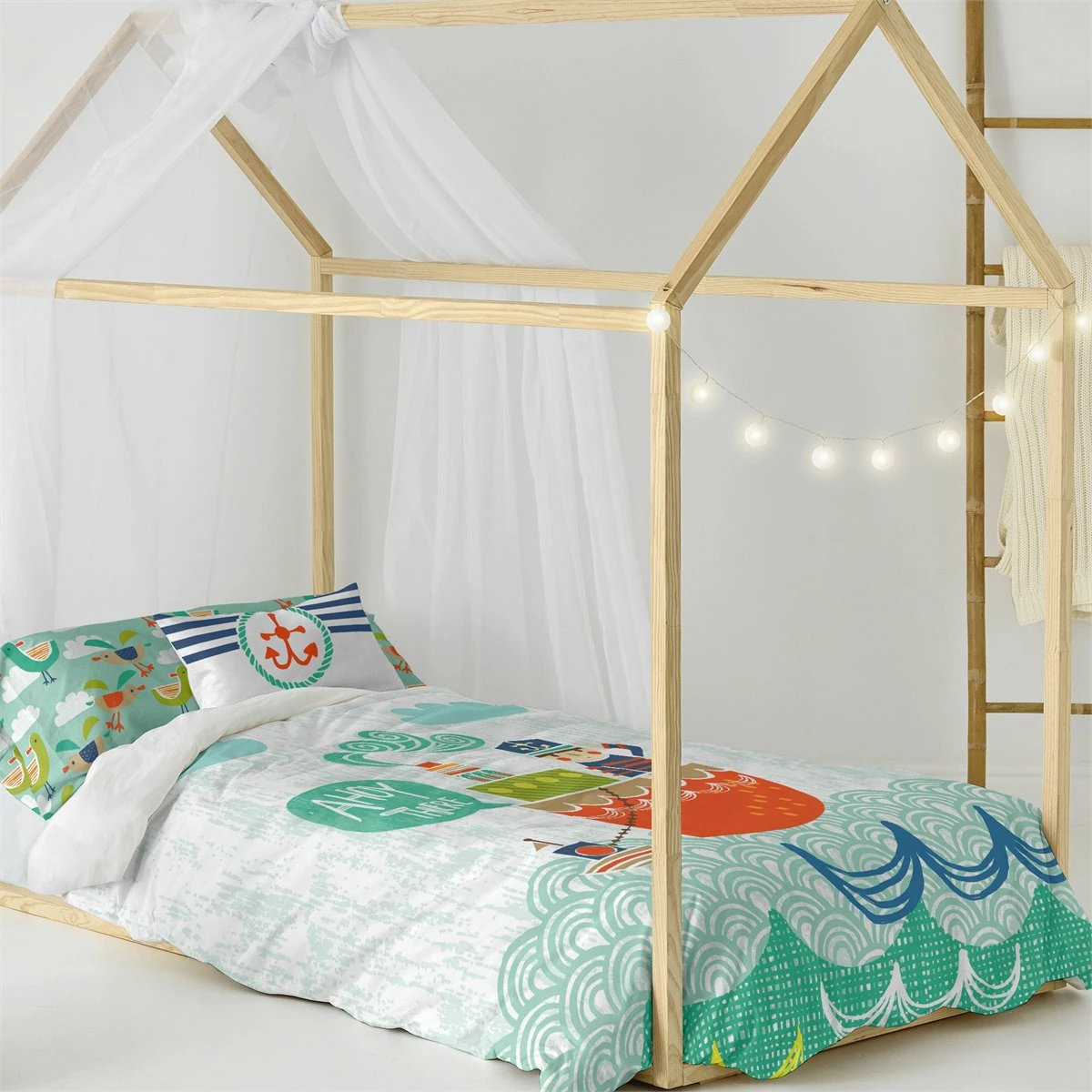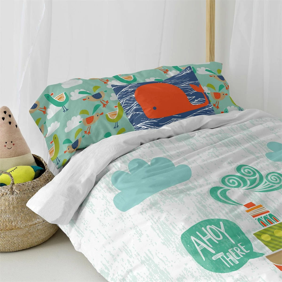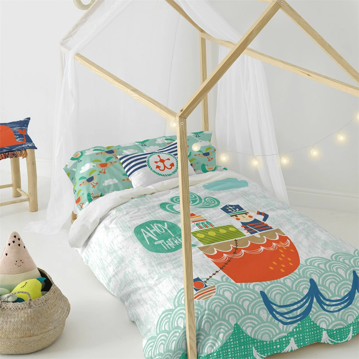 Ahoy Capitán, ¿ya puedo abordar el barco? La funda nórdica Ahoy There de la colección Moshi Moshi hará que tu hijo se divierta navegando a través de los océanos, mientras apoya su cabeza en la funda de almohada de juguetonas gaviotas.Hecho en España con 100% algodón y 150 hilos, lo que resulta en un producto ligero y transpirable de alta calidad. Los cierres con poppers de plástico facilitan el cambio el día de su lavado.No incluye bajeraDisponible en las siguientes tallas: * 140×200 (incluye funda de cojín estampado 63×63. * 155×220 [ Cama 80/90 ] (incluye funda de almohada estampada 45×110. * 180×220 [ Cama 105 ] (incluye funda de almohada estampada 45×125.
