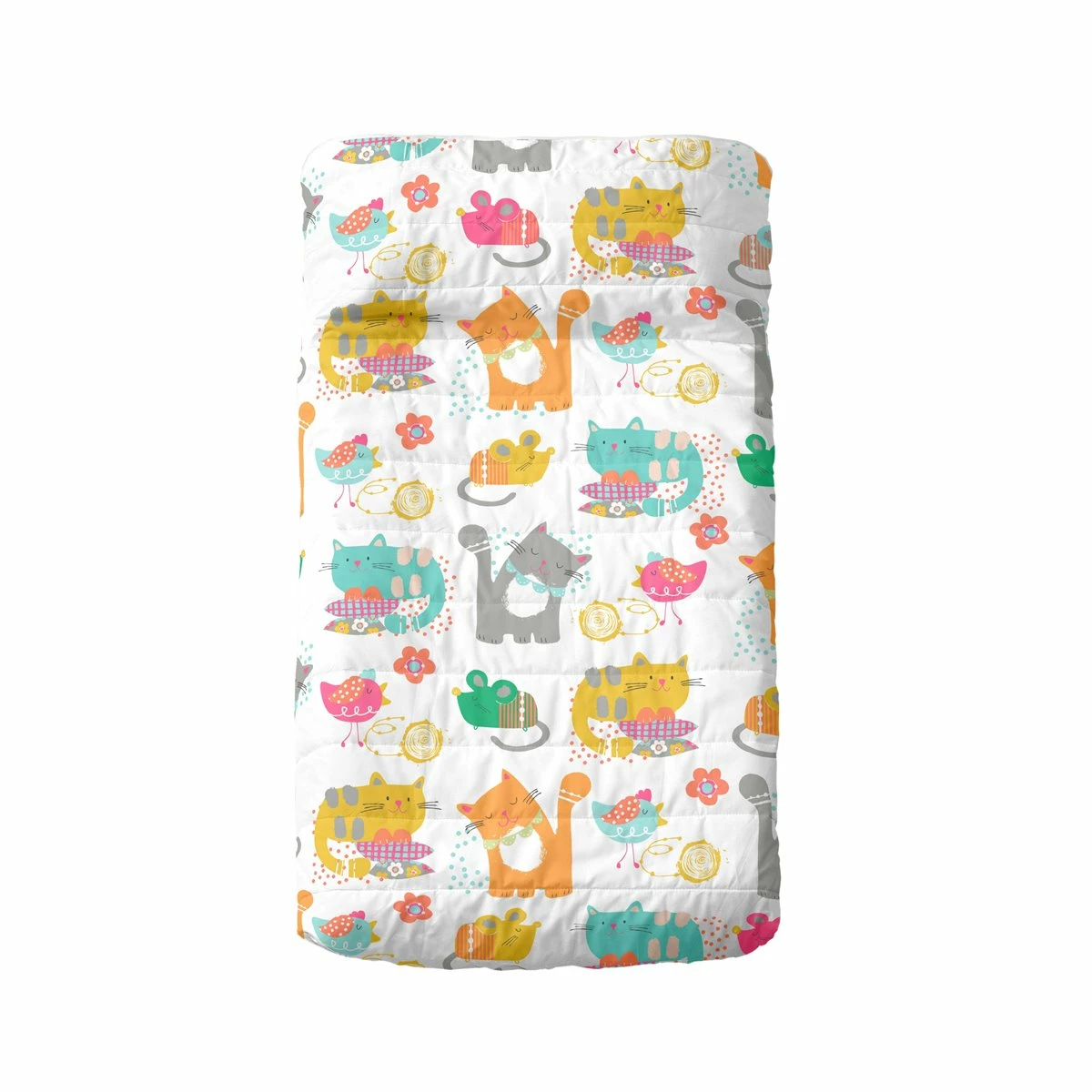 La colcha Cat & Mouse de la colección Moshi Moshi nos trae a la habitación de tus hijos una feliz historia sobre amistades poco probables . ¿Quién dijo que los gatos, ratones y pájaros no podrían ser los mejores amigos y divertirse juntos? La combinación precisa de colores de esta colcha es posible gracias a la impresión digital de alta definición, mientras que el algodón 100% con 150 hilos ofrece un toque suave y reconfortante. Acolchado en forma de rayas. El relleno es 100% poliéster de fibra hueca siliconada de 100 Gr. Incluye: – 1 x Colcha colcha 100×130 [Cuna].