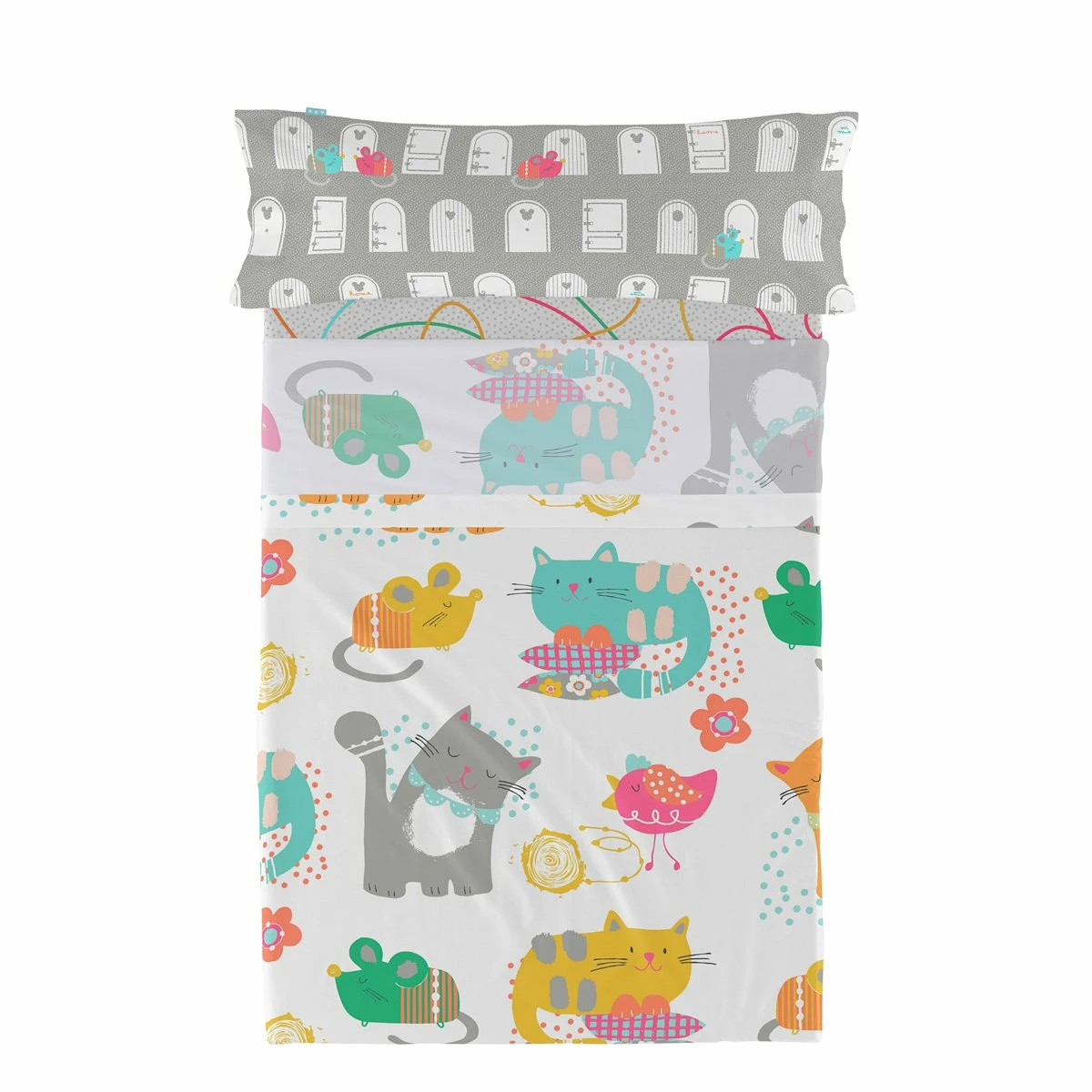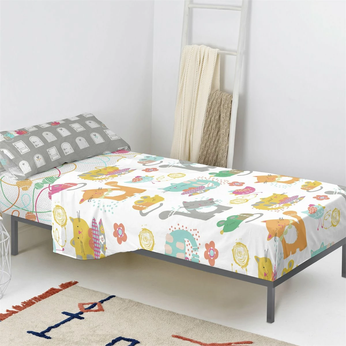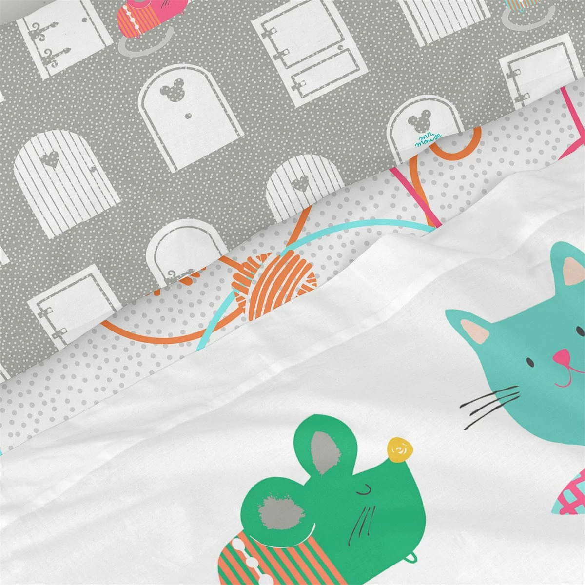 Es hora de jugar con los coloridos y divertidos animales de la sábana Cat & Mouse de la colección Moshi Moshi. No hay mejor manera de hacer buenos amigos que diviertiéndose.Esta suave y ligera sábana de algodón 100% viene con una funda de almohada estampada y se puede mezclar y combinar con otros productos de la misma colección.No incluye bajeraDisponible en las siguientes tallas: * 160×270 [ Cama 90 ] (incluye funda de almohada estampada 45×110. * 180×270 [ Cama 105 ] (incluye funda de almohada estampada 45×125.