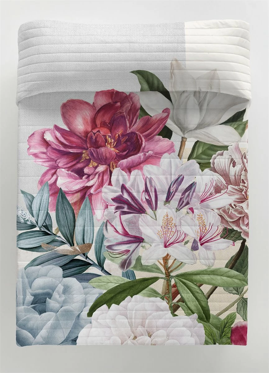 Colcha multipunto que contiene un ligero relleno de 120 gramos, es un producto ideal para primavera – verano o para los hogares con calefacción, finamente acolchada a líneas es muy decorativa y de gran confort.