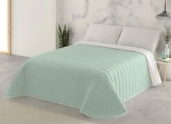 Colcha multipunto que contiene un ligero relleno de 120 gramos, es un producto ideal para primavera – verano o para los hogares con calefacción, finamente acolchada a líneas es muy decorativa y de gran confort.
