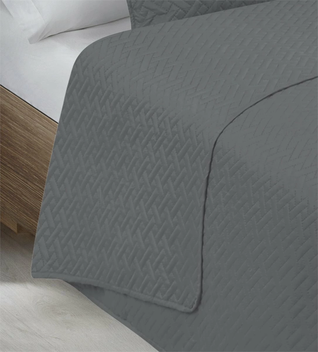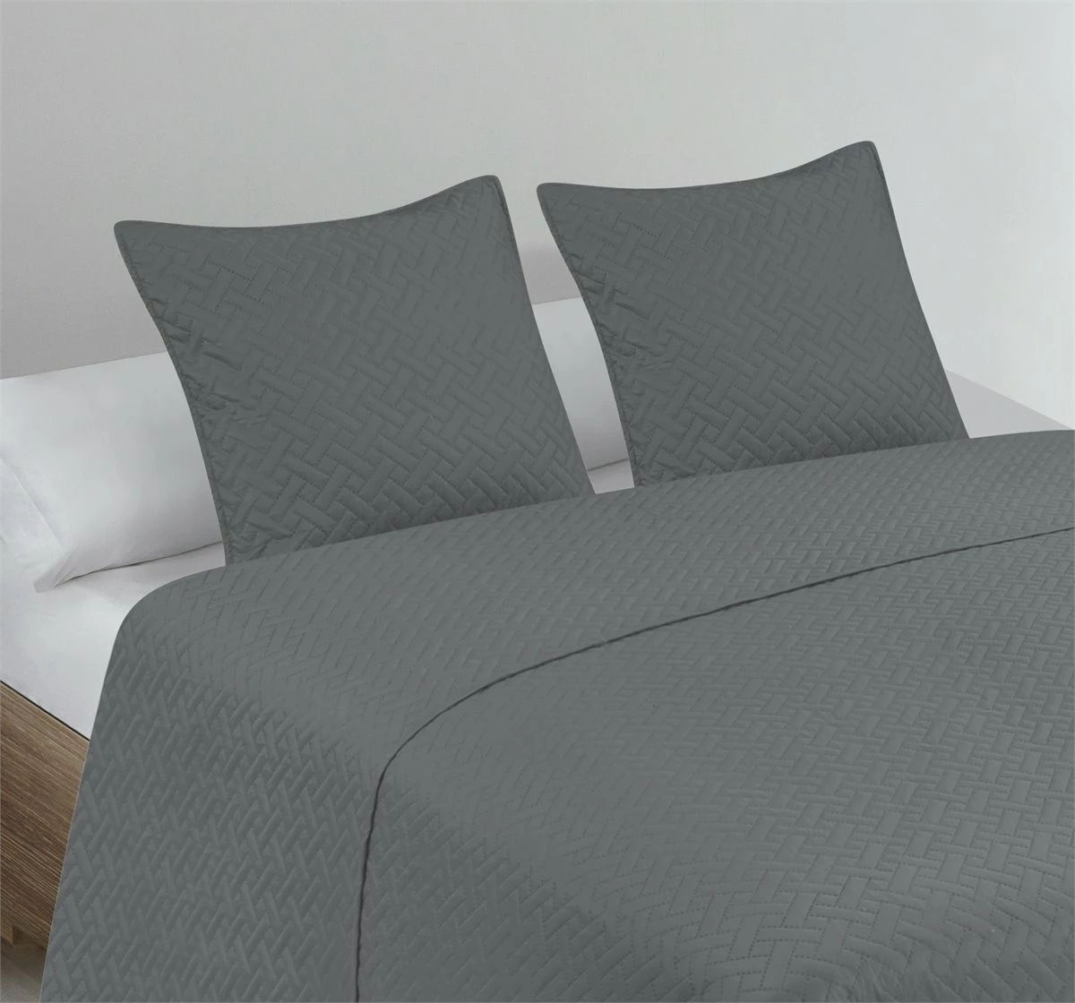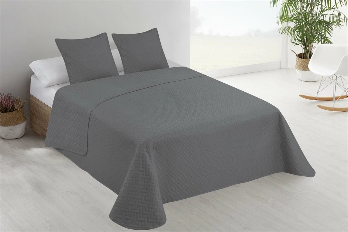 Colcha Lisa + Cojines Acolchada Belmonte Cama 90 Gris 180x260cm