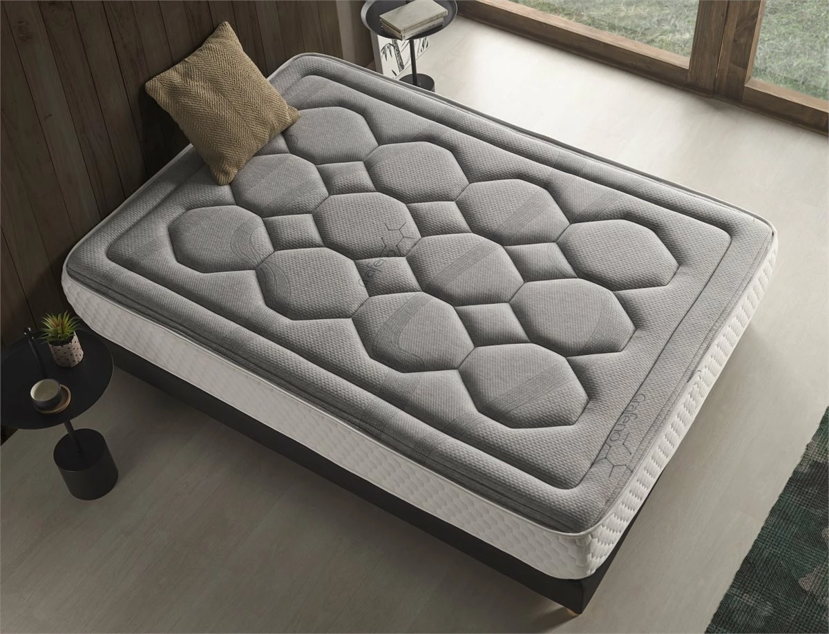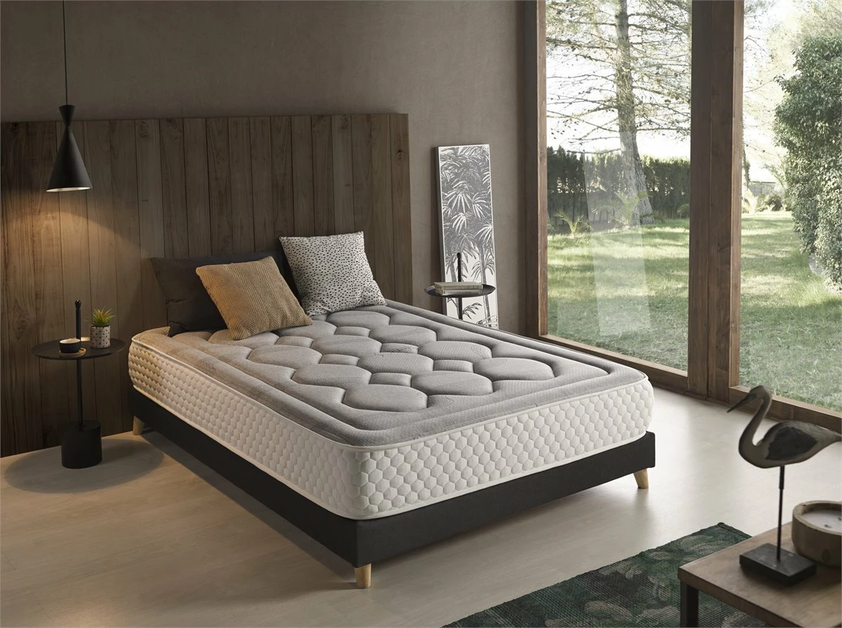 El colchón Natur Grafeno incorpora la novedosa tecnología del viscografeno que aúna la adaptabilidad de la viscoelástica y la conductividad térmica del grafeno, disipando eficazmente el calor para un descanso placentero sin acumulación de calor. Además, el efecto ionizante ayuda a descargar la energía estática que se genera por los movimientos producidos mientras dormimos, mejorando la calidad del sueño y ayudando a la reducción del estrés. Repele todo tipo de microorganismos y cuerpos extraños aportando un sueño más higiénicoEl núcleo espumación Bio Confort Plus es el material de alta resiliencia que mantiene de forma eficiente el peso del cuerpo y mantiene sus propiedades para el descanso durante toda la vida útil del colchón. Su acolchado con el nuevo sistema Natur GRAFENO proporciona una sensación de confort y un efecto “Nube”. Además de proporcionar una temperatura optima y transpirabilidad total en cualquier época del año gracias a las capas que componen el colchón.La firmeza de este colchón es media-alta y no realiza presión en ninguna de las 11 zonas de descanso. Proporciona una independencia de lechos perfecta y no notarás los movimientos. Características Técnicas:• Altura total: 28cm +/- 2 cm.• Firmeza: Media-Alta.• Acolchado en la tapa superior: 5 cm de visco Natur GRAFENO + supersoft de cómoda acogida, regulador térmico.• Núcleo HR de Alta Densidad Bio Confort Plus: Estructura de poro abierto, regularizando la mejor temperatura para cada estación del año. Este colchón representa la nueva generación de colchones fabricados sin muelles. La espuma que utilizamos hace que el colchón vuelva siempre a su forma original. • Doble sensación de Confort: Gracias al nuevo sistema Natur GRAFENO que brinda al durmiente una doble sensación de confort, aumentando así la percepción del efecto “Nube”. Con una transpirabilidad absoluta, un total reparto de los puntos de presión y una completa libertad de movimientos sobre el colchón.• La Temperatura Óptima: Gracias al sistema GRAFENO SENSE y a la incorporación de dos cámaras de aire independientes realizadas en tejido tridimensional, se produce una salida de aire constante, que proporciona un aislamiento térmico totalmente individualizado y que junto a la zona tridimensional de su base, garantiza el flujo del aire en un entorno 360º.• Platabanda: tejido Velour de alta gama acolchada en ultrasonidos de Ultima generación, con terminaciones de lujo a cuadros.• Acolchado Cara Superior tapa a tapa: Cada tapa se fabrica de manera individual para que el dibujo quede centrado y las costuras tengan mayor profundidad, logrando un máximo volumen y una correcta distribución de las presiones y minimizando los movimientos nocturnos. Por este motivo, este tipo de acolchado sólo se emplea en colchones de alta gama.• Acolchado cara inferior: tejido tridimensional 3D Air Fresh en gris de alta ventilación.• Ribete: Cosido especial de seguridad del ribete para una mejor compactibilidad. Tratamientos y certificados de nuestros colchones: • Función higiénica Sanitized® (especialista en el tratamiento antimicrobiano de textiles que protege a los colchones contra la formación de moho y algas, reduce la presencia de ácaros y ofrece una protección duradera.• Anti-humedad: Debido a que está elaborado con un tejido de última generación, da como resultado una óptima circulación del aire. Evitando la acumulación de humedad, manteniendo el colchón ventilado, creando la temperatura perfecta mientras duermes.• Silencioso: Gracias a su estructura y composición, hace que no produzca ningún ruido durante los movimientos que hace nuestro cuerpo mientras duerme.• Independencia de lechos.• Así mismo, nuestros colchones se han creado para respetar la correcta alineación de nuestra columna mientras descansamos.• Todos los tejidos que empleamos para la fabricación de estos colchones cumplen la normativa OEKO-TEX® Standard 100 (productos libres de sustancias nocivas.Instrucciones de uso, cuidados y Garantía:• El colchón es enviado enrollado y embalado al vacío.• aconsejable no utilizar el Colchón hasta 10 horas después de ser desembalado.• Protégelo con una funda o protector. Aspíralo por lo menos una vez al mes. Recuerda que éste debe ir sobre una superficie uniforme y no dejar vacíos que causan deformidad.• Gíralo con frecuencia. Garantía de 2 años.Fabricado en España.Nota: Por favor, revise bien el artículo a la hora de la entrega o montaje, antes de que el transportista u operario abandone el domicilio. Cualquier tipo de daño o incidencia en el envío o montaje tiene que ir reflejado en el albarán de entrega, a la hora de firmar, para poder reclamar a la empresa o persona responsable correspondiente.