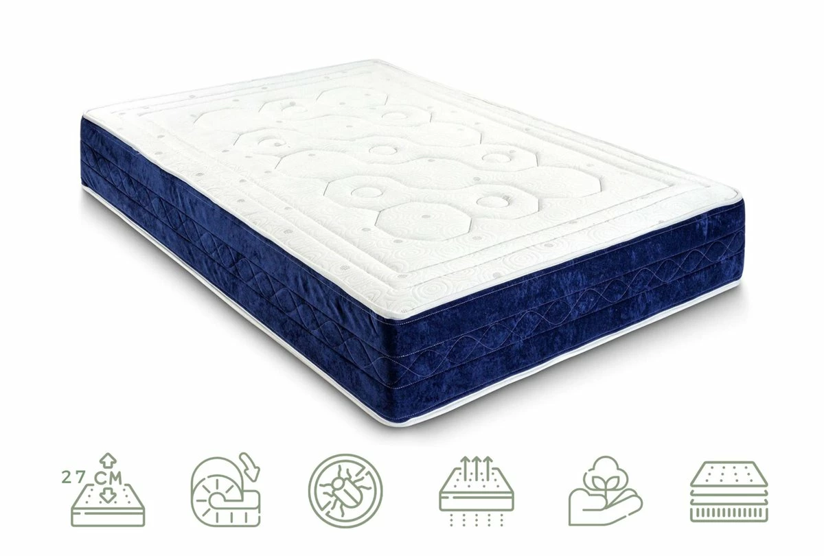 Diseñado por el departamento de I+D+I de colchones Bezen, el colchón viscoelástico Murano ofrece una adaptabilidad ideal para cualquier durmiente. Sistema patentado que expande, distribuye y regula las zonas de presión del cuerpo para lograr un excelente descanso, creado capa a capa de manera independiente para conseguir un efecto nube mientras duermes. Beneficios del colchón viscoelástico Murano: Elimina zonas de alta precisión adaptándose al contorno del cuerpo. Al disminuir las tensiones musculares, favorece una adecuada circulación de la sangre. Máxima independencia de lechos, minimizando los efectos de los movimientos del acompañante.Tejidos naturales con sistema Sanitized, antibacterias, antihongos, antiácaros.Tacto altamente suave con sensación relax. Características técnicas: Colchón de 27 cm de altura con 4 cm de capa de memoria de forma densidad 55kg/m3. Espuma HR (alta resiliencia en su núcleo con estructura de células abiertas que facilitan la ventilación del mismo. Tejido viscosoft natural transpirable. Anti-humedad. Colchón ergonómico y anatómico. Cosido especial de seguridad. Firmeza media y larga durabilidad. Certificado OEKO-TEX® de autenticidad de los materiales empleados en su fabricación, libres de sustancias nocivas. Producto fabricado en España. Garantía 2 años. El precio no incluye subida a planta ni montaje.
