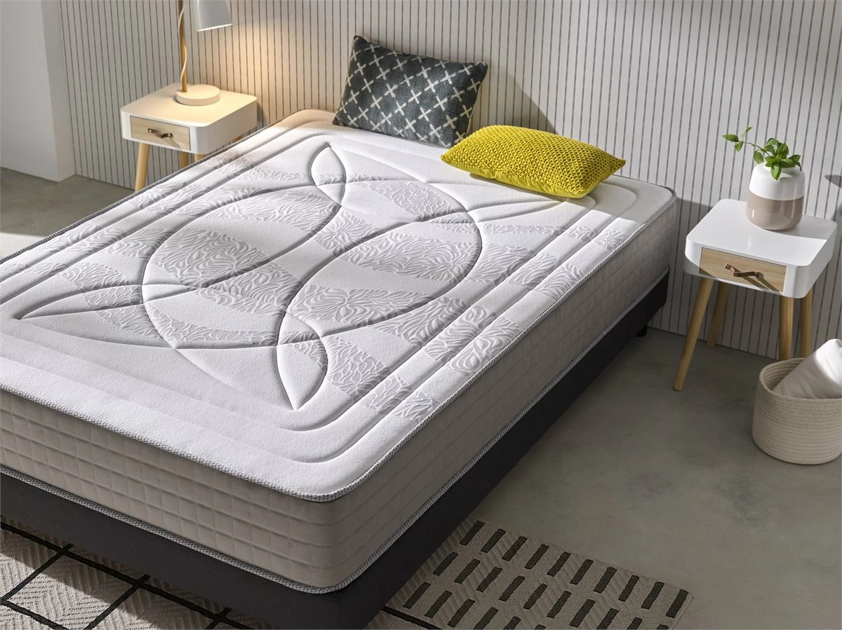 El ser humano pasa un tercio de su vida durmiendo. Nuestro colchón Viscoluxury Olympus está pensado para ofrecerte tu merecido descanso y te permitirá afrontar el día con energía y lleno de vitalidad. ¿Cómo? Integrando una capa de viscoelástica de gran calidad que favorecerá la relajación de los músculos, con el núcleo de espuma HR que ayudará a que el colchón vuelva siempre a su forma original.La cara de verano está elaborada con tejido 4D Air Confort que se caracteriza porque mantiene la sensación de frescor debido a su conductividad y absorción térmicas y a su permeabilidad. La cara de invierno está fabricada en tejido Strech, caracterizado por la elasticidad de sus fibras, su alta transpiración, convirtiéndolo en el tejido ideal para los meses más fríos.Características Técnicas:•Altura: 23 cms•Firmeza: Media-Alta.•Acolchado superior: 4 centímetros de visco + supersoft•Núcleo HR de Alta Desnidad: HR de Alta Densidad: este colchón representa la nueva generación de colchones fabricados sin muelles. La espuma que utilizamos hace que el colchón vuelva siempre a su forma original.•Platabanda: Acolchado Tapa a Tapa: Cada tapa se fabrica de manera individual para que el dibujo quede centrado y las costuras tengan mayor profundidad, logrando un máximo volumen y una correcta distribución de las presiones y minimizando los movimientos nocturnos. Por este motivo, este tipo de acolchado sólo se emplea en colchones de alta gama.•Ribete: Cosido especial de seguridad del ribete para una mejor compactibilidad.•Colchón Viscoelástico: Los colchones con visco son relajantes porque son flexibles y potencian la adaptabilidad de personas de todo tipo de complexión. No ejercen presión en ningún punto para conseguir un descanso profundo y continuado.Tratamientos y certificados de nuestros colchones:•Función higiénica Sanitized® (especialista en el tratamiento antimicrobiano de textiles que protege a los colchones contra la formación de moho y algas, reduce la presencia de ácaros y ofrece una protección duradera.•Anti-humedad: Está elaborado con un tejido de última generación, el cual permite una óptima circulación del aire, evitando la acumulación de humedad y manteniendo el colchón ventilado, creando la temperatura perfecta mientras duermes.•Silencioso: Gracias a su estructura y composición, hace que no produzca ningún ruido durante los movimientos que hace nuestro cuerpo mientras duerme.•Independencia de lechos.•Nuestros colchones se han creado para respetar la correcta alineación de nuestra columna mientras descansamos.•Todos los tejidos que empleamos para la fabricación de estos colchones cumplen la normativa OEKO-TEX® Standard 100 (productos libres de sustancias nocivas.Instrucciones de uso, cuidados y Garantía: •El colchón es enviado enrollado y embalado al vacío. •Es aconsejable no utilizar el Colchón hasta 10 horas después de ser desembalado.•Protégelo con una funda o protector.•Aspíralo por lo menos una vez al mes.•Recuerda que éste debe ir sobre una superficie uniforme y no dejar vacíos que causen deformidad.•Gíralo con frecuencia.•Garantía de 2 años.