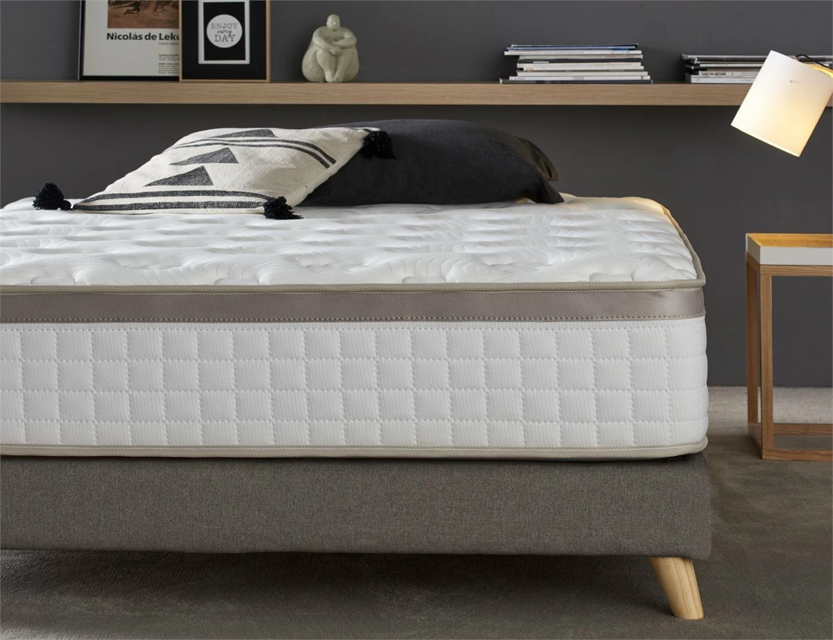 Los colchones con visco son relajantes porque son flexibles y potencian la adaptabilidad de personas de todo tipo de complexión. No ejercen presión en ningún punto para conseguir un descanso profundo y continuado. Pertenece a la nueva generación de colchones sin muelles. Además, las capas de este colchón se han dispuesto de manera progresiva, para ofrecer una acogida gradual consiguiendo un descanso personalizado y adaptable a la morfología del durmiente. Características técnicas:◆Altura:23 cm ± 2◆Firmeza: Media-alta.◆Acolchado superior: 4cm de visco + supersoft.◆Núcleo HR de Alta Densidad: Estructura de poro abierto, regularizando la mejor temperatura para cada estación del año. Este colchón representa la nueva generación de colchones fabricados sin muelles. La espuma que utilizamos hace que el colchón vuelva siempre a su forma original.◆Platabanda: bordado en acabado Luxury con canales de traspiración y falso topper gris. ◆Acolchado cara superior: Acolchado continuo: Cada tapa se fabrica con un dibujo que emplea elaboradas formas geométricas sin espacios ni saltos entre las costuras. Mediante la unión de las diferentes capas de alta y baja resiliencia se consigue un efecto similar a la ingravidez.◆Acolchado cara inferior: tejido tridimensional 3D entrelazado altamente transpirable y tacto suave.◆Ribete: Cosido especial de seguridad del ribete para una mejor compactibilidad. Tratamientos y certificados de nuestros colchones:◆Función higiénica Sanitized® (especialista en el tratamiento antimicrobiano de textiles que protege a los colchones contra la formación de moho y algas, reduce la presencia de ácaros y ofrece una protección duradera.◆Anti-humedad: Debido a que está elaborado con un tejido de última generación, da como resultado una óptima circulación del aire. Evitando la acumulación de humedad, manteniendo el colchón ventilado, creando la temperatura perfecta mientras duermes.◆Silencioso: Gracias a su estructura y composición, hace que no produzca ningún ruido durante los movimientos que hace nuestro cuerpo mientras duerme.◆Independencia de lechos.◆Así mismo, nuestros colchones se han creado para respetar la correcta alineación de nuestra columna mientras descansamos.Todos los tejidos que empleamos para la fabricación de estos colchones cumplen la normativa OEKO-TEX® Standard 100 (productos libres de sustancias nocivas.Instrucciones de uso, cuidados y Garantía.◆El colchón es enviado enrollado y embalado al vacío.◆Es aconsejable no utilizar el Colchón hasta 10 horas después de ser desembalado.Protégelo con una funda o protector. Aspíralo por lo menos una vez al mes. Recuerda que éste debe ir sobre una superficie uniforme y no dejar vacíos que causan deformidad.◆Gíralo con frecuencia.◆Garantía de 2 años.◆Fabricado en España.Nota: Por favor, revise bien el artículo a la hora de la entrega o montaje, antes de que el transportista u operario abandone el domicilio. Cualquier tipo de daño o incidencia en el envío o montaje tiene que ir reflejado en el albarán de entrega, a la hora de firmar, para poder reclamar a la empresa o persona responsable correspondiente.