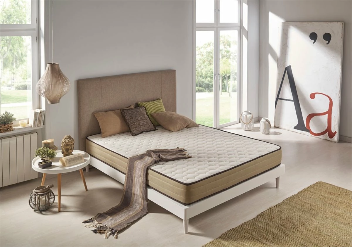 El Colchón Luxury Bamboo Confort contiene una capa de viscosoft Eco-Fresh de poro abierto transpirable 100 % que aporta confort incidiendo directamente sobre las 7 zonas de descanso. Está compuesto de fibras naturales de caña bambú con alto contenido en Silicio.Contiene un núcleo especial Pro-Nature, fabricado con materiales naturales para que el cuerpo descanse en un entorno natural y ecológico. Estas fibras de bamboo contienen un grado de elasticidad muy alto lo que permite una adaptación del cuerpo liberando tensiones y consiguiendo un estado profundo de relajación.Características Técnicas:•Altura: 21 cm +/- 2.•Firmeza: Media-Alta.•Acolchado superior: 2cm de Viscosoft Eco-Fresh.•Núcleo HR de Alta Densidad: Estructura de poro abierto, regularizando la mejor temperatura para cada estación del año. Este colchón representa la nueva generación de colchones fabricados sin muelles. La espuma que utilizamos hace que el colchón vuelva siempre a su forma original.•Platabanda: tejido velour y acolchado ultrasonido.•Acolchado Cara Superior tapa a tapa: Cada tapa se fabrica de manera individual para que el dibujo quede centrado y las costuras tengan mayor profundidad, logrando un máximo volumen y una correcta distribución de las presiones y minimizando los movimientos nocturnos. Por este motivo, este tipo de acolchado sólo se emplea en colchones de alta gama.•Acolchado cara inferior: tejido tridimensional 3D entrelazado altamente transpirable y tacto suave.•Ribete: Cosido especial de seguridad del ribete para una mejor compactibilidad. Tratamientos y certificados de nuestros colchones: •Función higiénica Sanitized® (especialista en el tratamiento antimicrobiano de textiles que protege a los colchones contra la formación de moho y algas, reduce la presencia de ácaros y ofrece una protección duradera.•Anti-humedad: Debido a que está elaborado con un tejido de última generación, da como resultado una óptima circulación del aire. Evitando la acumulación de humedad, manteniendo el colchón ventilado, creando la temperatura perfecta mientras duermes.•Silencioso: Gracias a su estructura y composición, hace que no produzca ningún ruido durante los movimientos que hace nuestro cuerpo mientras duerme.•Independencia de lechos.•Así mismo, nuestros colchones se han creado para respetar la correcta alineación de nuestra columna mientras descansamos.•Todos los tejidos que empleamos para la fabricación de estos colchones cumplen la normativa OEKO-TEX® Standard 100 (productos libres de sustancias nocivas. Instrucciones de uso, cuidados y Garantía.•El colchón es enviado enrollado y embalado al vacío.•Es aconsejable no utilizar el Colchón hasta 10 horas después de ser desembalado.•Protégelo con una funda o protector. Aspíralo por lo menos una vez al mes. Recuerda que éste debe ir sobre una superficie uniforme y no dejar vacíos que causan deformidad.•Gíralo con frecuencia. Garantía de 2 años.Fabricado en España.