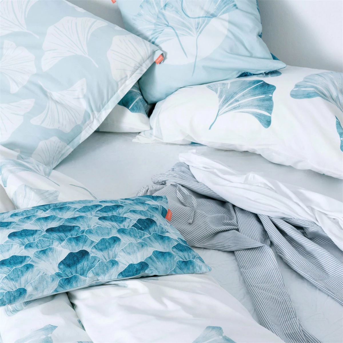 La sofisticada del diseño de las hojas de gingko en forma de abanico con dos lóbulos y la hermosa gama de tonos azul grisáceo y azul blanqueado que se ven en la funda nórdica Gingko de la colección Blanc darán a tu habitación un aspecto aireado y de inspiración oriental.El 100% de algodón, la fibra natural más utilizada del mundo, es la ropa de cama perfecta: fresca, ligera, suave y transpirable. Además, se puede cambiar fácilmente el día de la colada gracias a los cierres de plástico a presión.Disponible en las siguientes tallas: * 140×200 * 155×220 [Cama 80/90] * 180×220 [Cama 105] * 200×200 * 220×220 [Cama 135/140] * 240×220 [Cama 150/160] * 260×220 [Cama 180/200] * 260×240 [Cama 180/200]