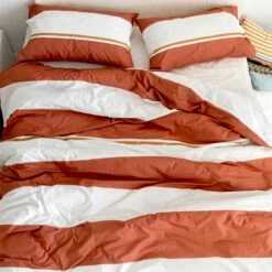 La funda nórdica Golden Lands de la colección Blanc, con sus atrevidas rayas horizontales y su tradicional color marrón chocolate con toques dorados, añadirá un toque minimalista pero versátil a tu habitación, al tiempo que ampliará visualmente el espacio. Práctico y fácil de cambiar gracias a los cierres de plástico a presión, esta funda nórdica de algodón 100% de 150 hilos garantiza un tacto ligero y suave. Una fórmula en la que todos ganan.Disponible en las siguientes tallas: * 140×200 * 155×220 [Cama 80/90] * 180×220 [Cama 105] * 200×200 * 220×220 [Cama 135/140] * 240×220 [Cama 150/160] * 260×220 [Cama 180/200] * 260×240 [Cama 180/200]