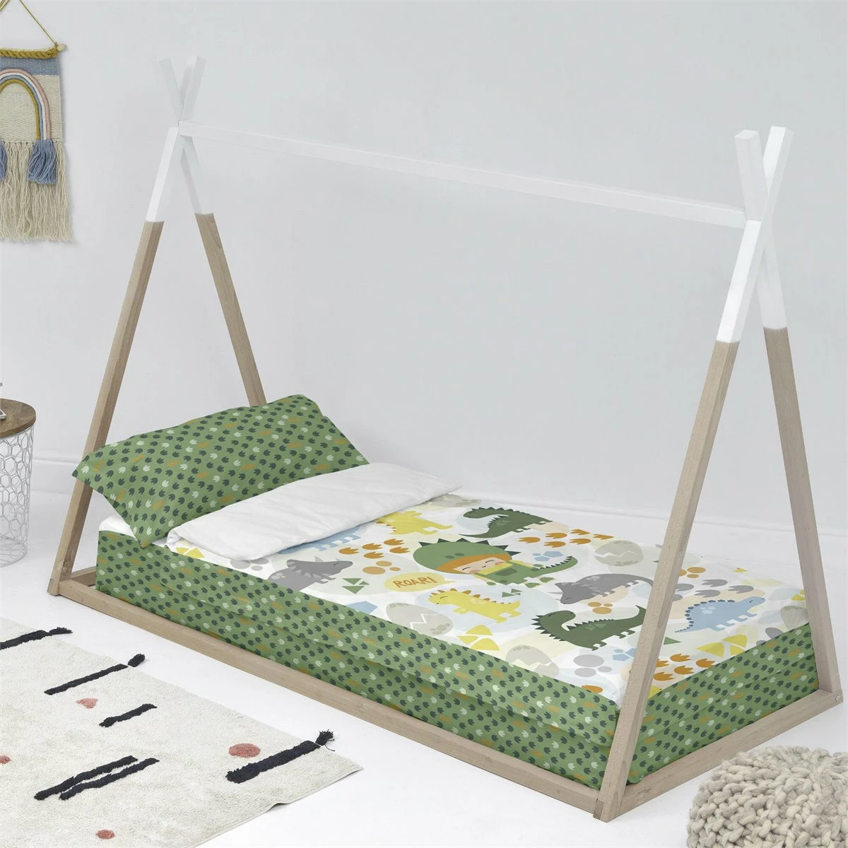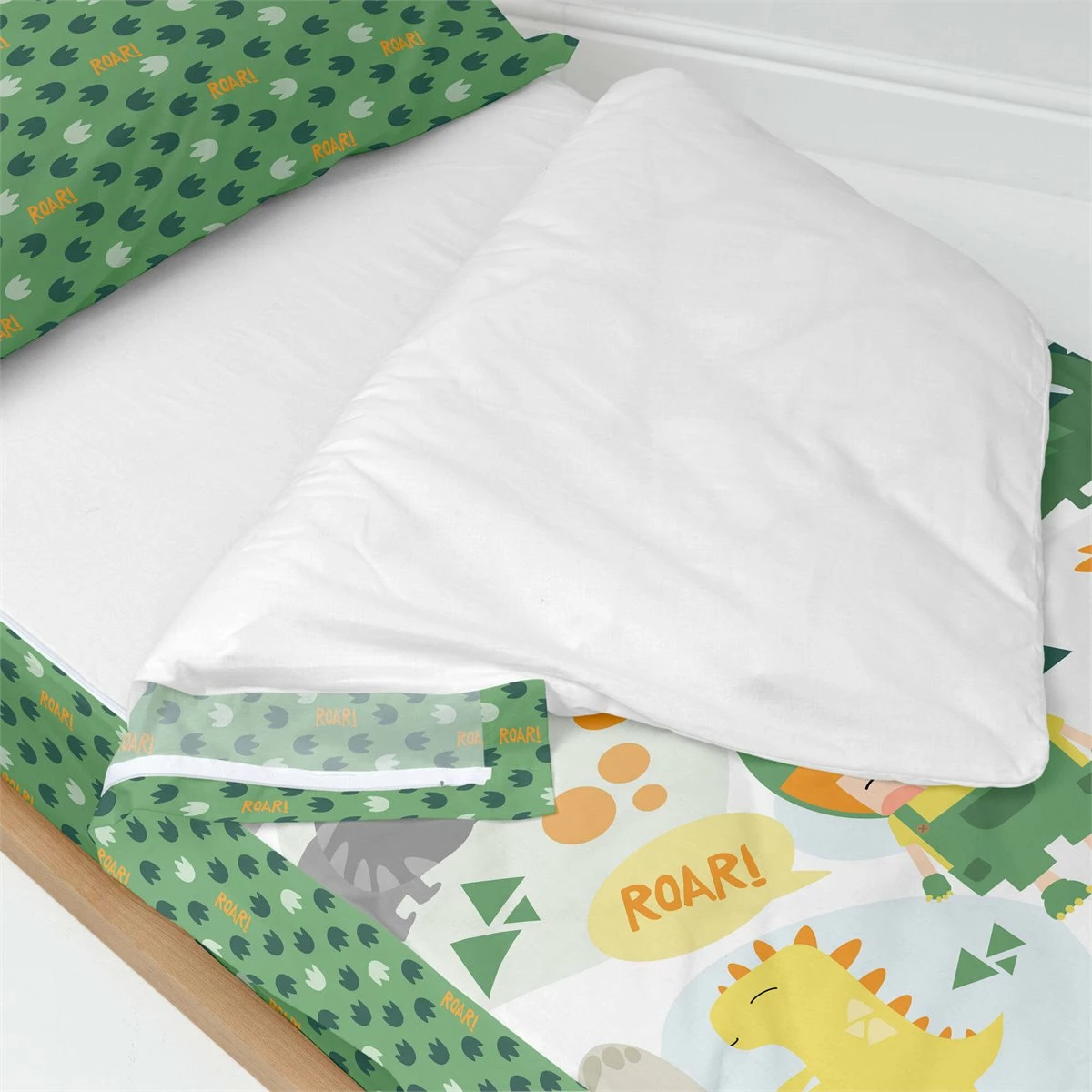 El Saco Nórdico Happydino de la Colección Happynois es el lugar perfecto para acurrucarse y soñar con aventuras en tierras antiguas con amigables criaturas prehistóricas. Sin embargo, recomendamos vestirse como un dinosaurio; es divertido y ayuda a integrarse.Saco nórdico con relleno compuesto por funda nórdica, relleno nórdico, sábana bajera ajustable y funda de almohada todo 100% algodón de 150 hilos. Saco nórdico sin relleno compuesto por funda nórdica, sábana bajera ajustable y funda de almohada todo 100% algodón de 150 hilos. Disponible en las siguientes tallas: * 90×200 * 105×200
