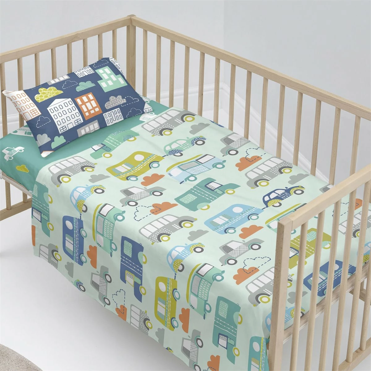 A pesar de que puede haber mucho tráfico en el camino, la sábana Holiday de la colección Moshi Moshi hará que su hijo tenga ganas de un divertido viaje alrededor del mundo en coloridos coches y casas móviles.Hecha en España con 100% algodón, 150 hilos e impresa digitalmente en alta definición, esta sábana se puede mezclar y combinar con otros productos de la misma colección e incluye una funda de almohada estampada.No incluye bajeraDisponible en las siguientes tallas: * 100×130 [ Cuna ] (incluye funda de almohada estampada 50×30. * 120×180 [ Maxicuna ] (incluye funda de almohada estampada 40×60.