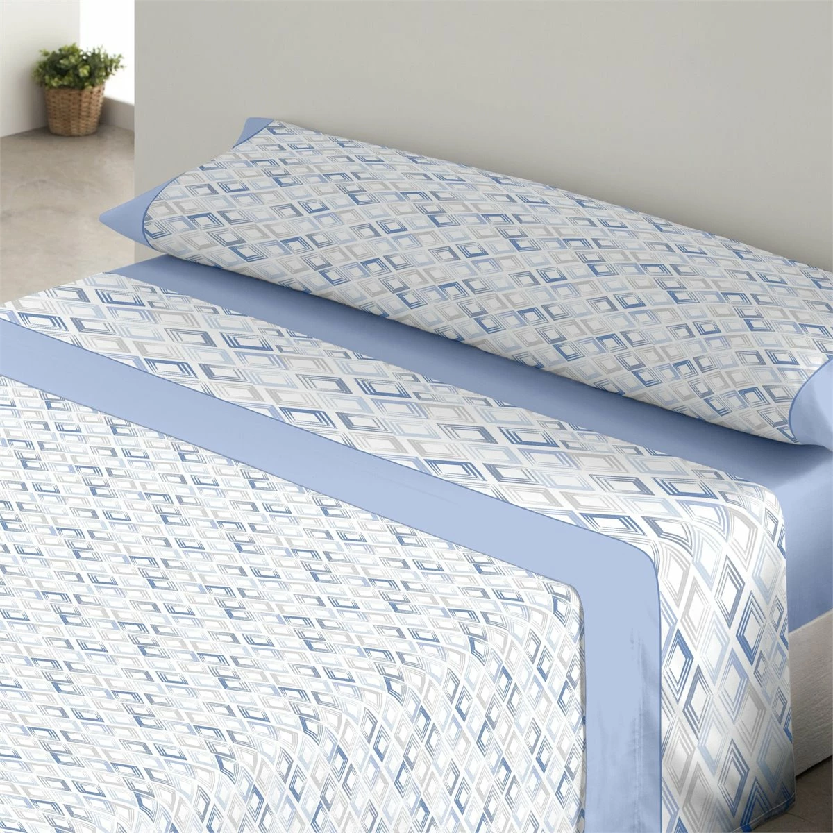 Juego De Sábanas Tres Piezas Donegal Rombo Cama De 90 Azul