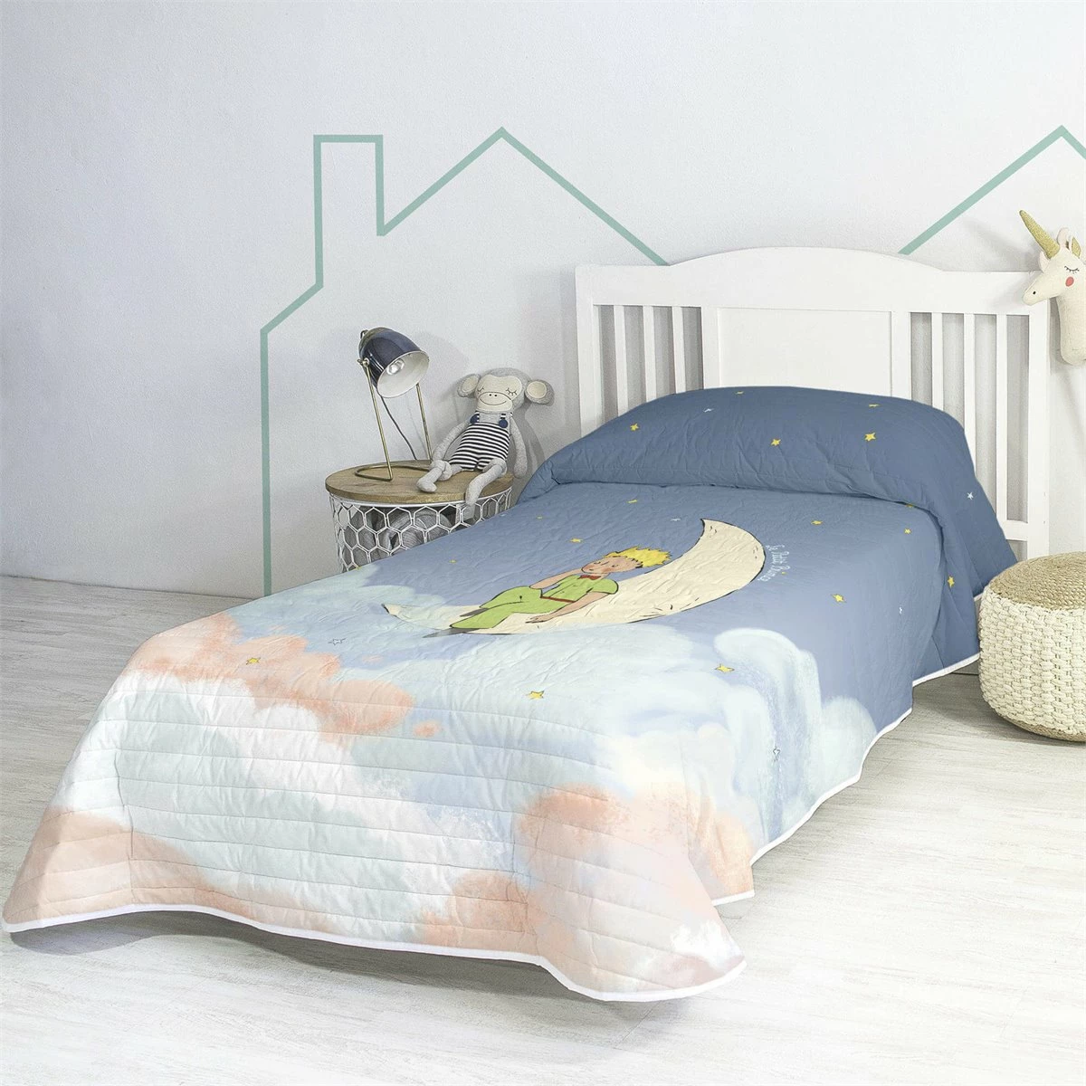 La habitación de tu hijo se convertirá en el escenario de una hermosa noche estrellada cuando cubras su cama con la Colcha La Lune de la Colección Le Petit Prince. Deja que tu hijo ayude al Principito a contar las estrellas mientras se sientan juntos en la media luna. Esta colcha acolchada de algodón 100%, perfecta para el entretiempo, tiene 150 hilos, lo que garantiza un tacto ligero y suave que ayudará a su hijo a conciliar un sueño profundo.Disponible en las siguientes tallas:• 180×260 [Cama 80/90]• 200×260 [Cama 105]