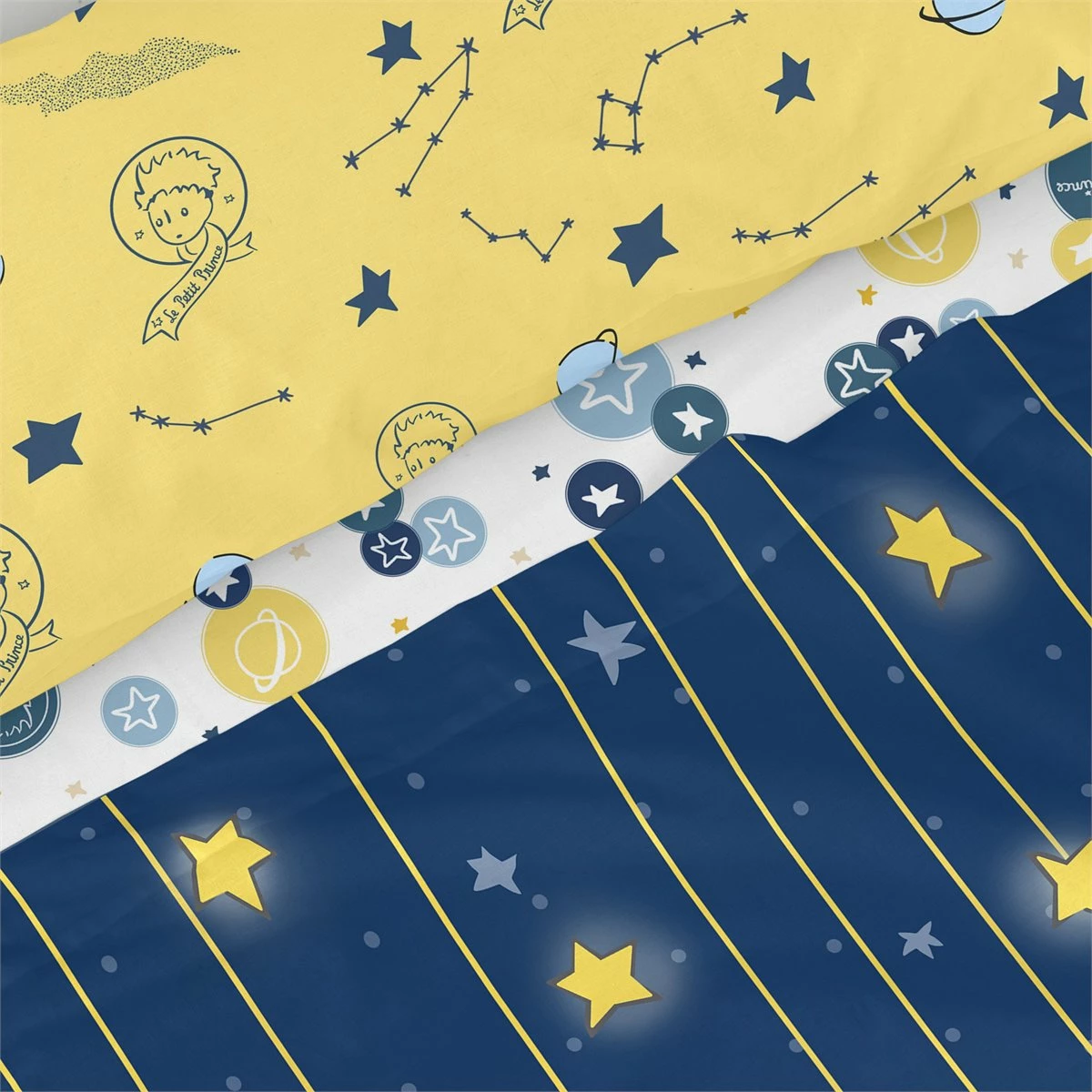 Como una hermosa noche de estrellas fugaces, el juego de sábanas La Nuit de la colección Le Petit Prince llenará la habitación de su hijo con un despliegue de luz mágica. Los tonos oscuros y las estrellas brillantes crean el escenario perfecto para un sueño largo y tranquilo.La amplia paleta de colores que se ve en esta sábana de algodón 100% se consigue gracias a la estampación digital de alta definición, fabricada en España.Traducción realizada con la versión gratuita del traductor www.DeepL.com/TranslatorDisponible en las siguientes tallas: * 160×270 [Cama 80/90](incluye funda de almohada 45×110. * 180×270 [Cama 105] (incluye funda de almohada 45×125.