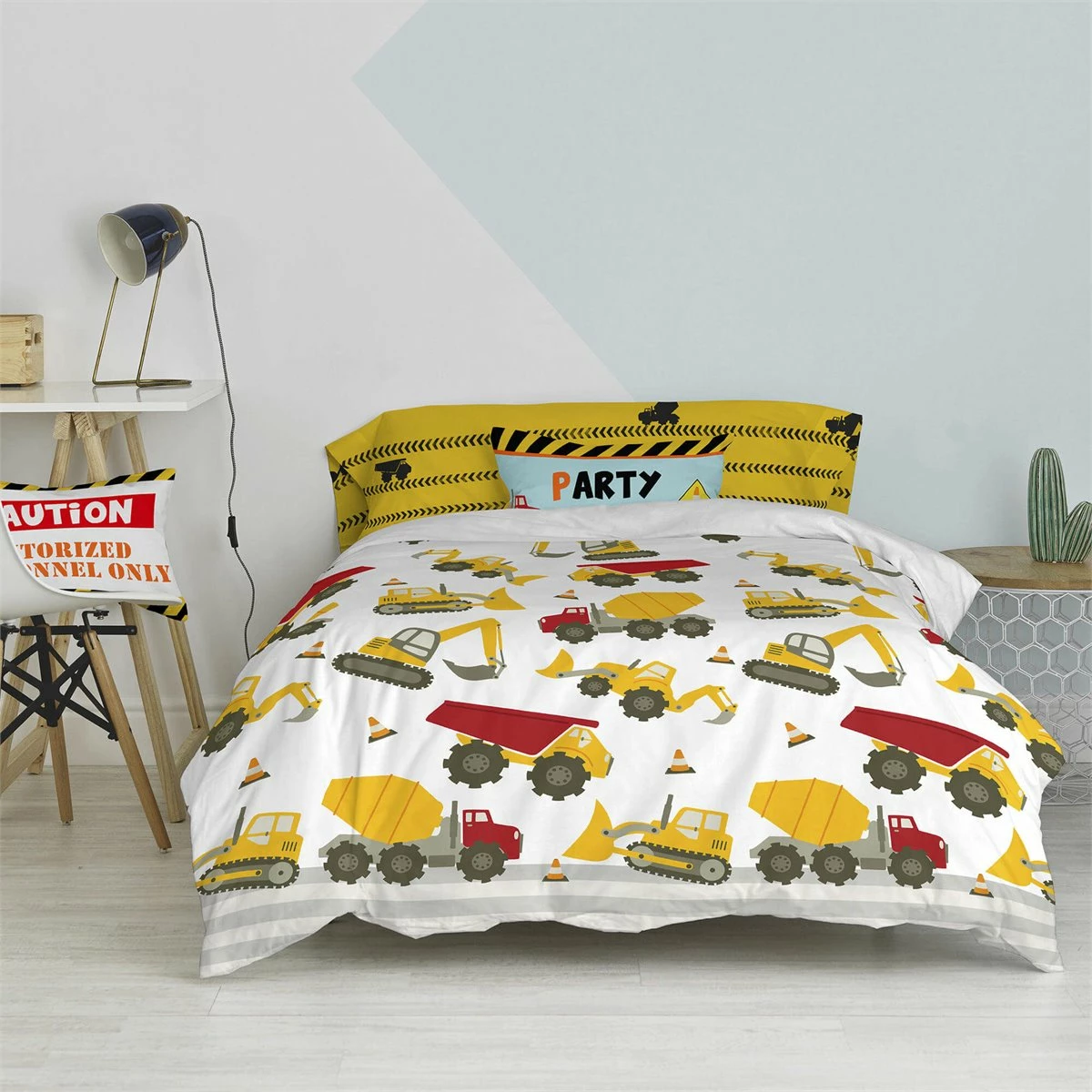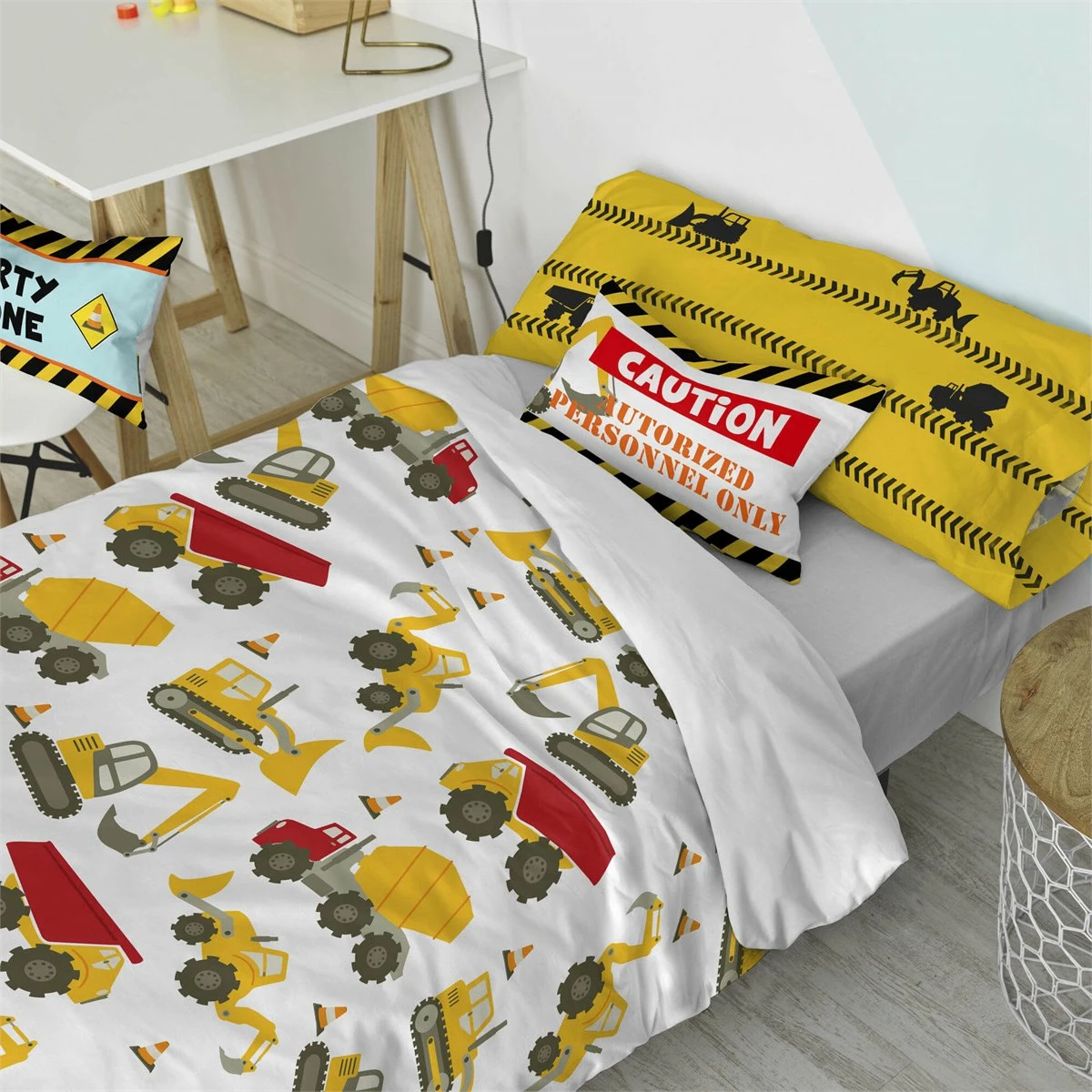 Los motores rugen, las bocinas suenan continuamente y los frenos chillan mientras las niveladoras, las mezcladoras de asfalto y las excavadoras mantienen ocupado a tu hijo en el emocionante mundo de la construcción de la funda nórdica Machinery de la Colección Mr Fox. Permíteles dar las órdenes mientras apoyan la cabeza en la funda de almohada a juego incluida en el conjunto.Gracias a la impresión digital de alta definición, estos productos de algodón 100% mantendrán las mismas líneas nítidas y colores llamativos que tenían el primer día.No incluye bajeraDisponible en las siguientes tallas: * 140×200 (incluye funda de cojín estampado 63×63. * 155×220 [ Cama 80/90 ] (incluye funda de almohada estampada 45×110. * 180×220 [ Cama 105 ] (incluye funda de almohada estampada 45×125.