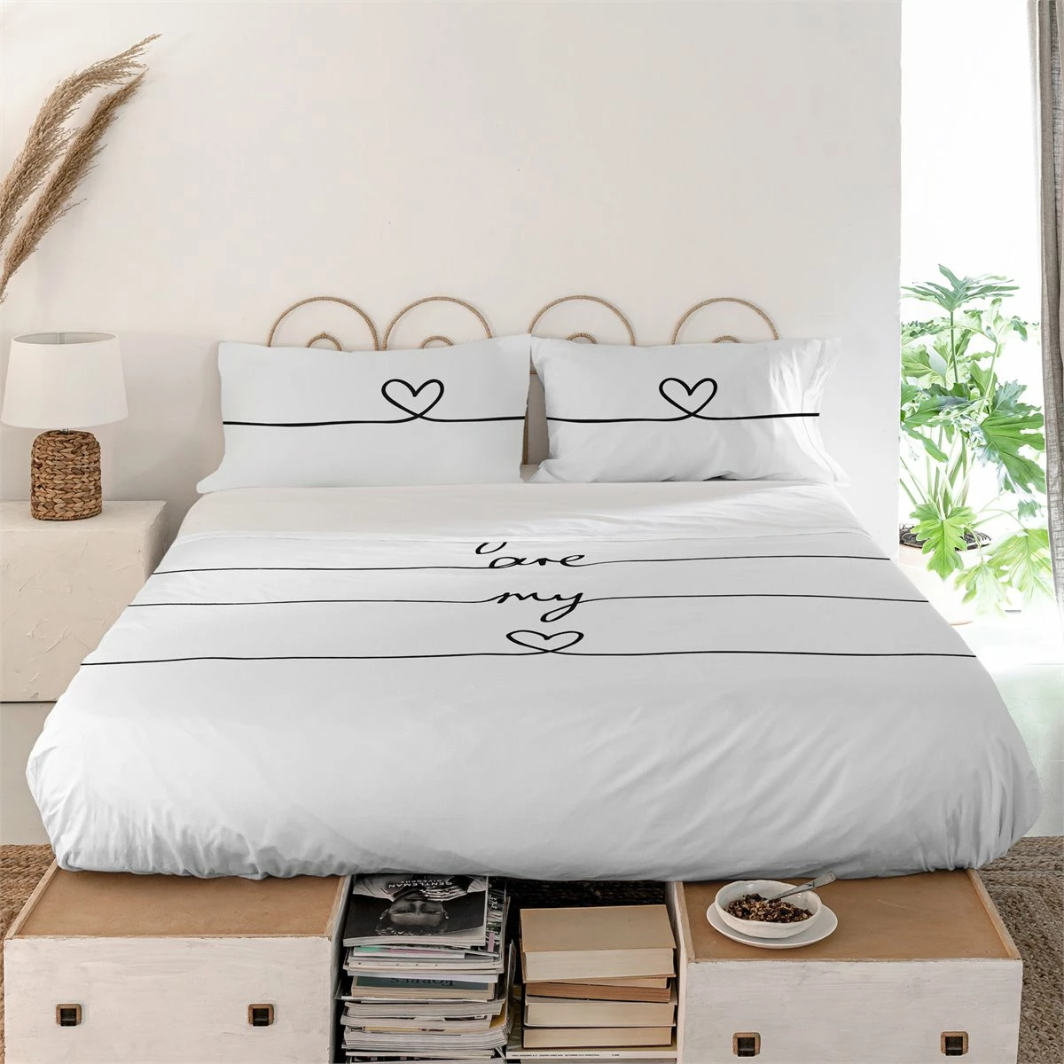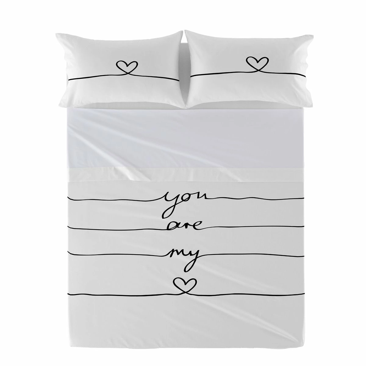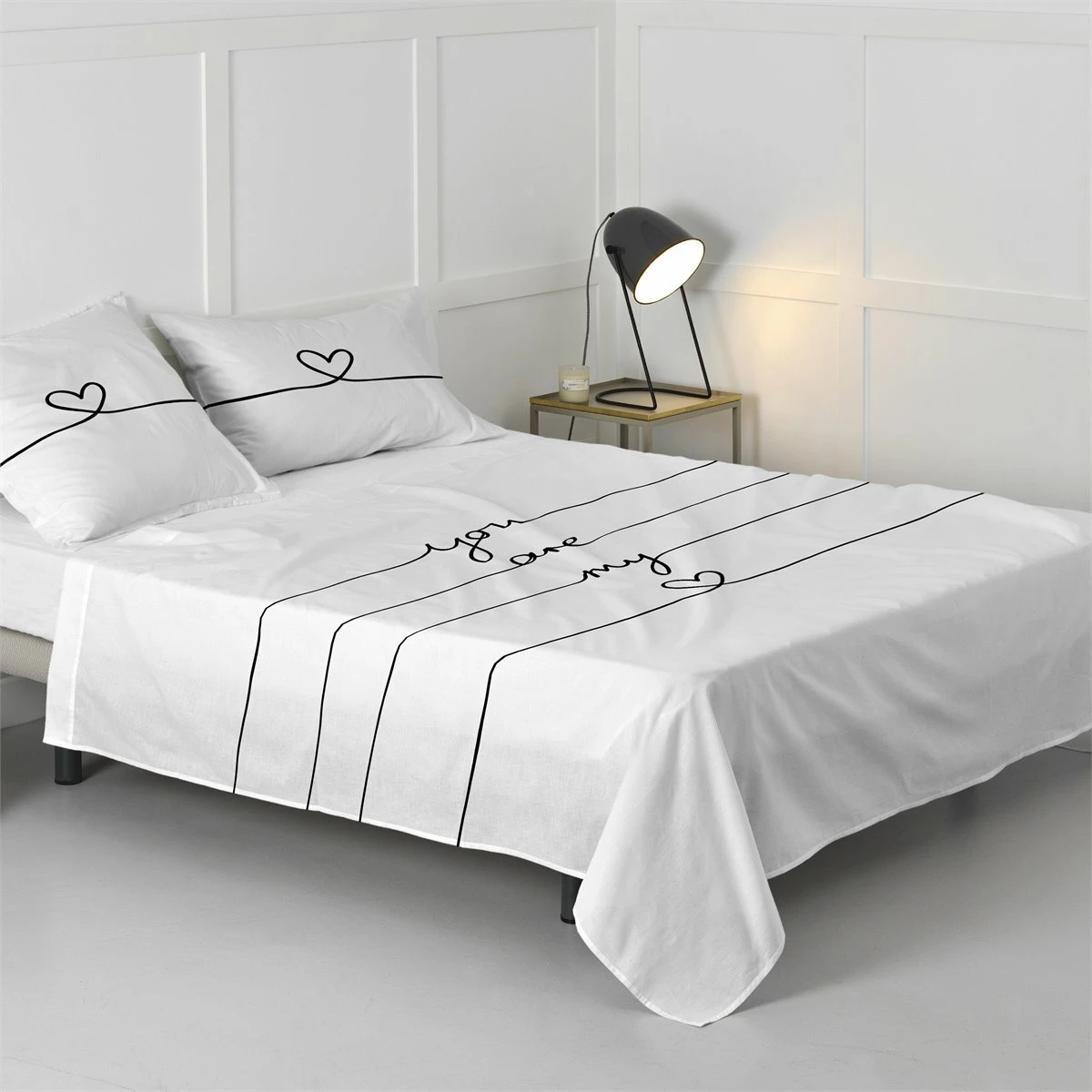 No necesitarás decir mucho más cuando decores tu dormitorio con el diseño clásico, aunque minimalista y moderno, de la sábana My Love de la colección Blanc. Guarde sus palabras para otro momento y lugar. Los ricos detalles de color negro permanecerán estables en esta suave y ligera sábana de algodón 100% gracias a la estampación digital de alta definición.Disponible en las siguientes tallas: * 160×270 [Cama 80/90] * 180×270 [Cama 105] * 210×270 [Cama 135/140] * 240×270 [Cama 150/160] * 260×270 [Cama 180/200]