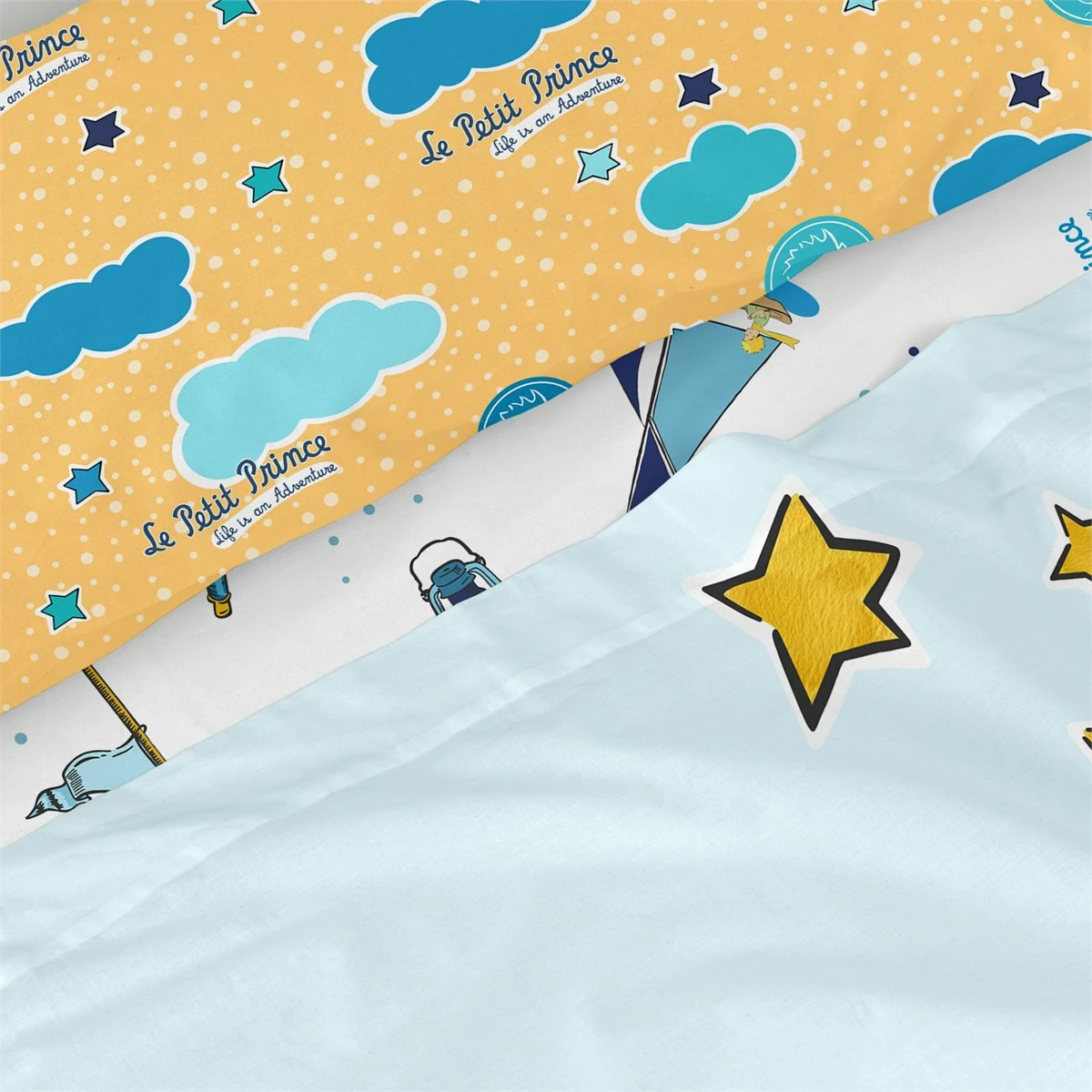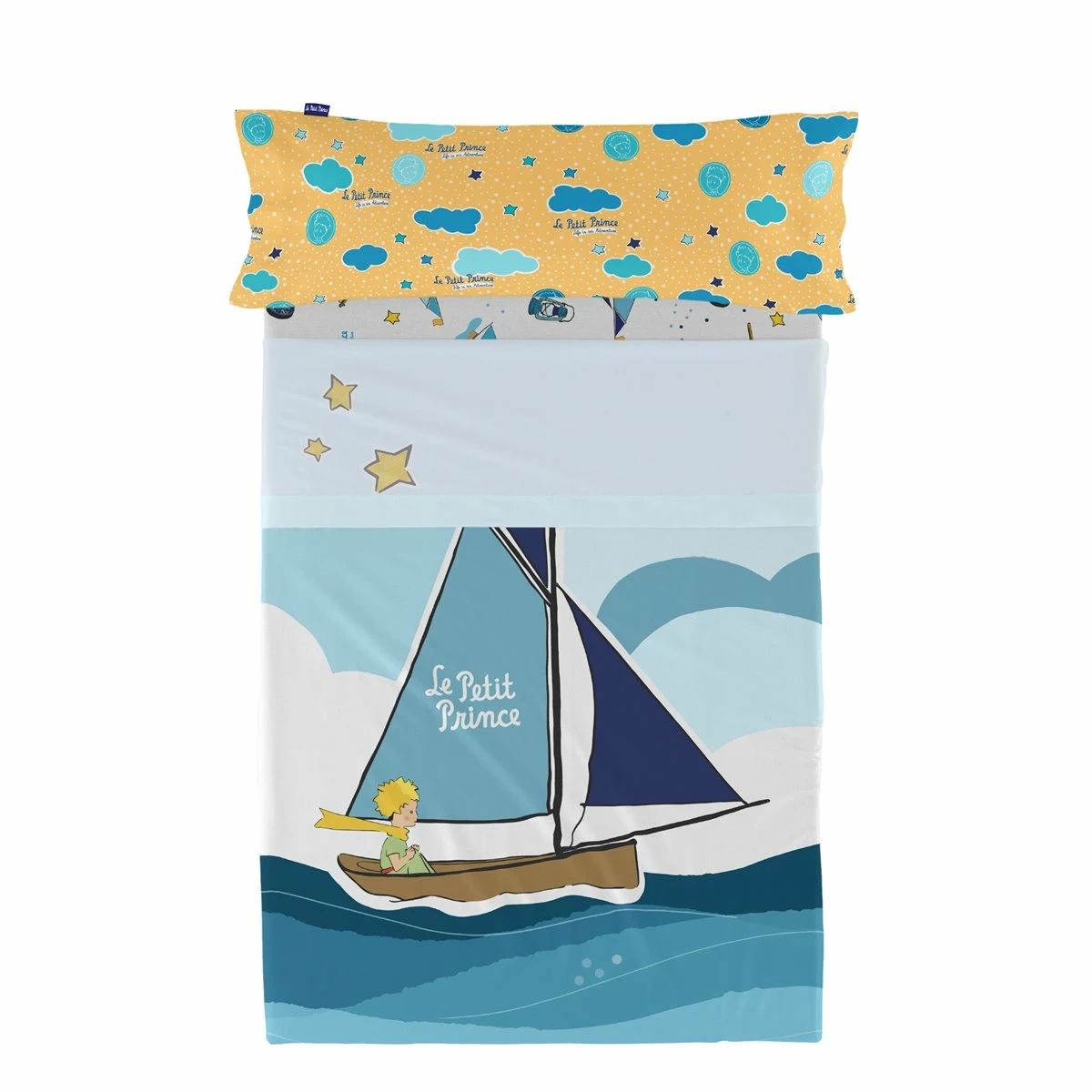 Si buscas un tema de inspiración náutica para la habitación de tu hijo, la sábana Navigateur de la colección Le Petit Prince les hará navegar durante la noche en la mejor compañía.La refrescante paleta de colores azules que se ve en esta sábana de algodón 100% se consigue gracias a la estampación digital de alta definición y contrasta con los tonos cálidos de la funda de almohada..Disponible en las siguientes tallas: * 160×270 [Cama 80/90](incluye funda de almohada 45×110. * 180×270 [Cama 105] (incluye funda de almohada 45×125.