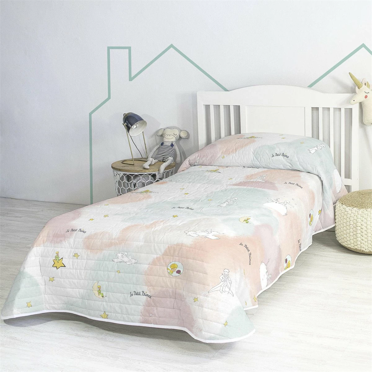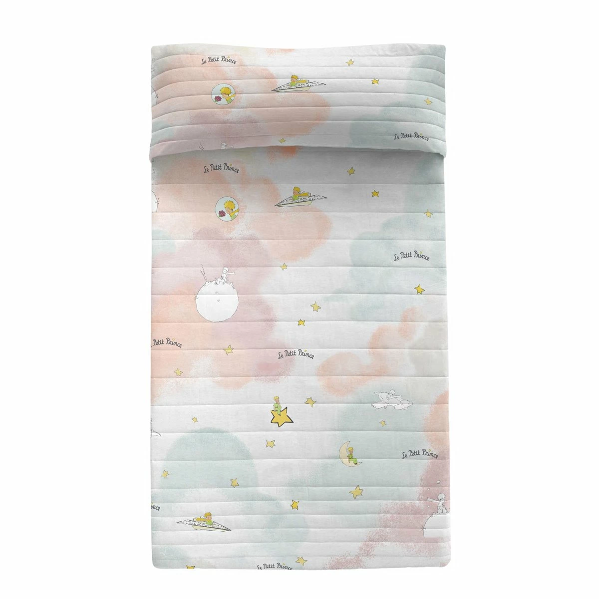 Los tonos pastel apagados que forman las suaves nubes de la colcha Nuages de la colección Le Petit Prince contrastan maravillosamente con la sencillez gráfica de los dibujos, creando un aspecto sofisticado y etéreo.La amplia paleta de colores y los degradados que se aprecian en este producto de algodón 100% se consiguen gracias a la estampación digital de alta definición, y contrastan con el reverso y el bies de color blanco liso. Disponible en las siguientes tallas:• 180×260 [Cama 80/90]• 200×260 [Cama 105]