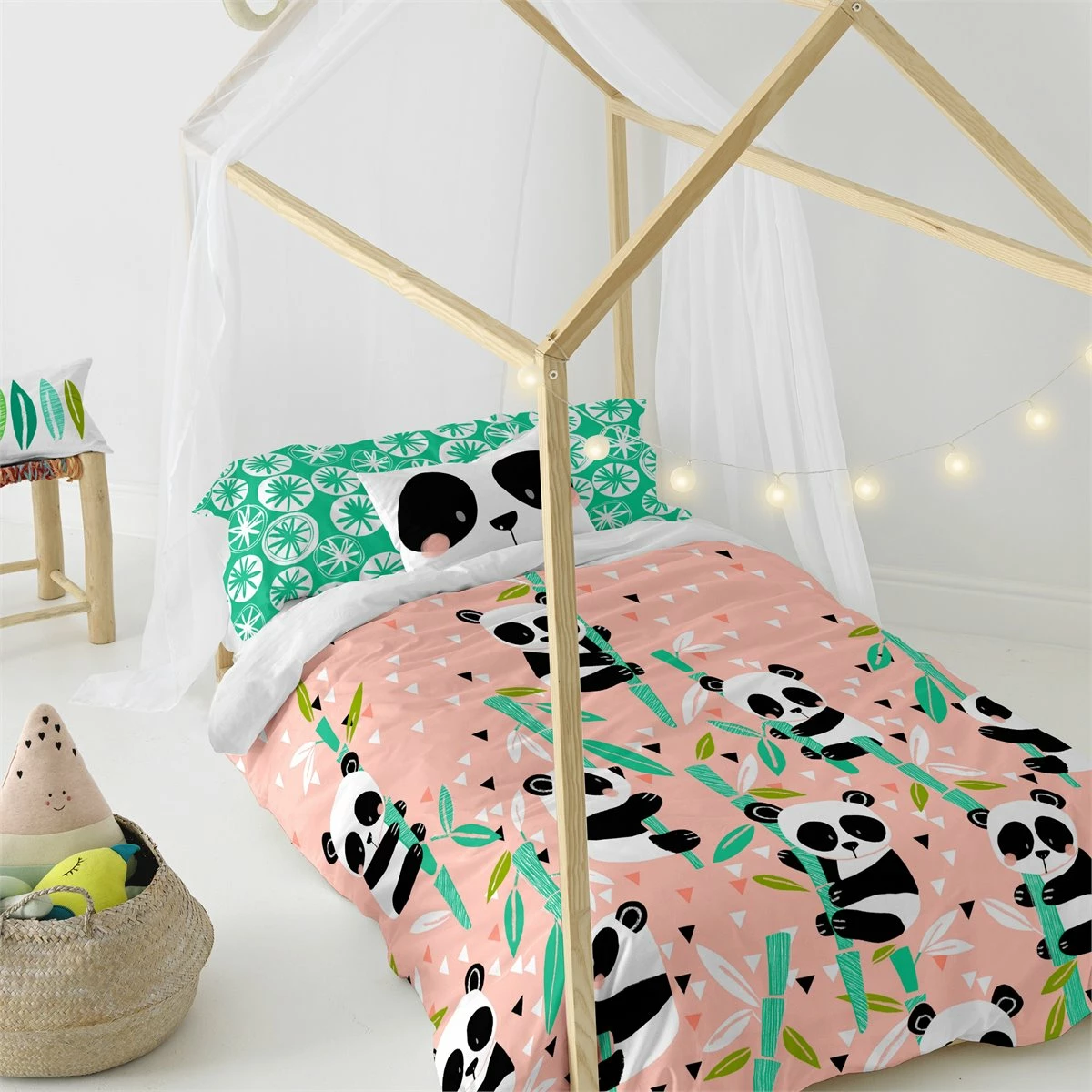 ¡La fiesta de bambú ha comenzado en la funda nórdica Panda Garden Pink de la colección Moshi Moshi! ¿Has visto lo bien educados que son los osos panda y lo bonitos y rectos que se sientan mientras comen? Hermosas lecciones de la naturaleza en tonos rosa y verde .Esta divertida funda nórdica hecha con 100% algodón y un conteo de 150 hilos le da un toque más suave y reconfortante e incluye una funda de almohada estampada.No incluye bajeraDisponible en las siguientes tallas: * 140×200 (incluye funda de cojín estampado 63×63. * 155×220 [ Cama 80/90 ] (incluye funda de almohada estampada 45×110. * 180×220 [ Cama 105 ] (incluye funda de almohada estampada 45×125.