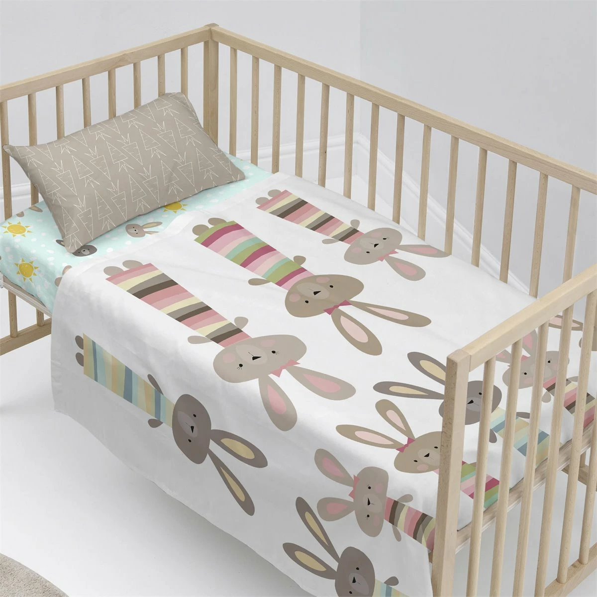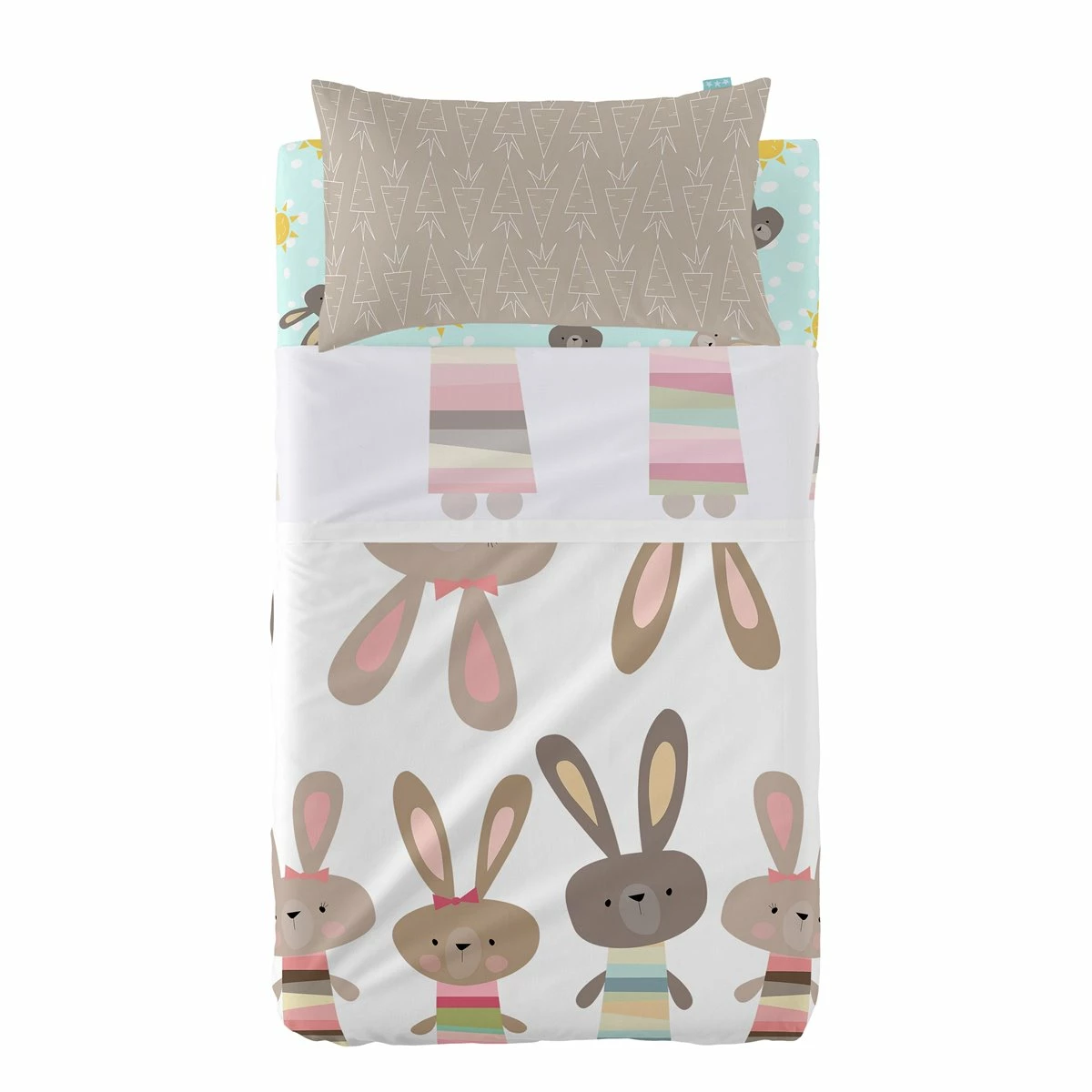 Desde el anochecer hasta el amanecer, desde arriba y abajo, los simpáticos y curiosos conejitos de la sábana Rabbit Family de la colección Moshi Moshi están aquí para acompañar a tu hijo con sus orejas puntiagudas y sus coloridos vestidos.Fabricada en España con 100% algodón, 150 hilos e impresa digitalmente en alta definición, esta sábana se puede mezclar y combinar con otros productos de la misma colección e incluye una funda de almohada estampada.No incluye bajeraDisponible en las siguientes tallas: * 100×130 [ Cuna ] (incluye funda de almohada estampada 50×30. * 120×180 [ Maxicuna ] (incluye funda de almohada estampada 40×60.