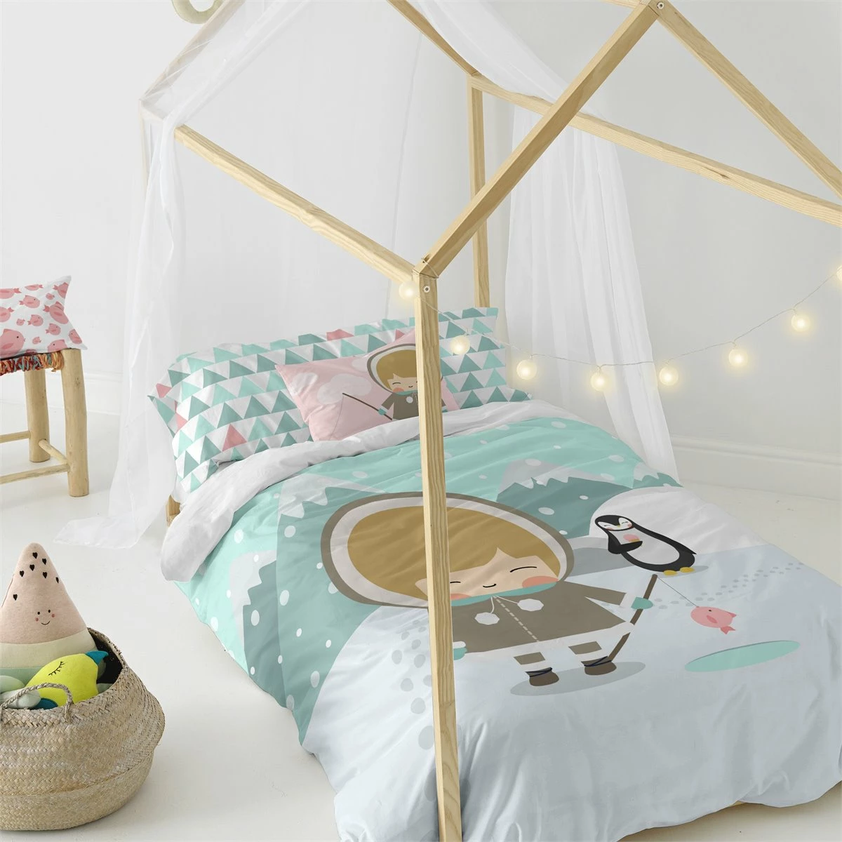 Prepárate peque, la funda de cojín Skymo Day de la colección Happynois no solo vestirá tu habitación con los colores refrescantes del Polo Norte, sino que también te enseñará cómo los esquimales atrapan sus peces … ¡a través de un agujero en el hielo! ¡Genial!Esta animada funda nórdica hecha con 100% algodón y 150 hilos le da un toque más suave y reconfortante e incluye una colorida funda de almohada a juego.No incluye bajera ni relleno nórdicoDisponible en las siguientes tallas: * 140×200 (incluye funda de cojín estampado 63×63. * 155×220 [ Cama 80/90 ] (incluye funda de almohada estampada 45×110. * 180×220 [ Cama 105 ] (incluye funda de almohada estampada 45×125.