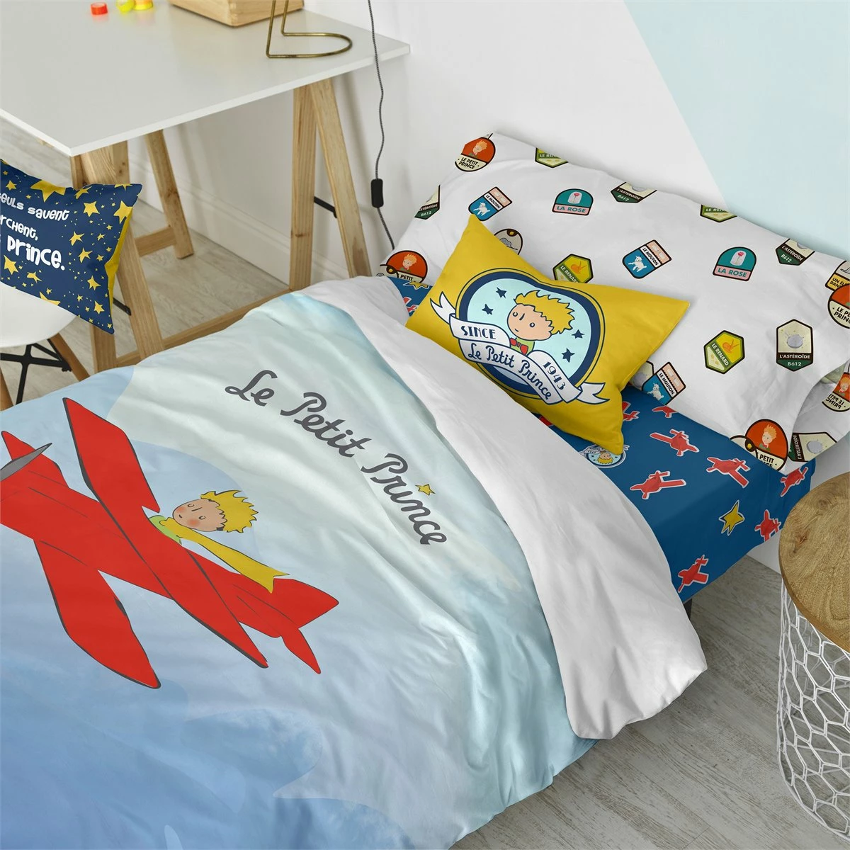 La funda nórdica Son Avion de la colección Le Petit Prince hará que tu hijo sueñe con vuelos emocionantes a destinos fascinantes cada noche. Y no olvides echar un vistazo a la funda de almohada a juego para ver qué cosas geniales pueden descubrir juntos.El degradado de colores y los detalles de este producto 100% algodón se logran gracias a la impresión digital de alta definición. Orgullosamente hecho en España.No incluye bajera ni relleno nórdicoDisponible en las siguientes tallas: * 140×200 (incluye funda de cojín estampado 63×63. * 155×220 [ Cama 80/90 ] (incluye funda de almohada estampada 45×110. * 180×220 [ Cama 105 ] (incluye funda de almohada estampada 45×125.