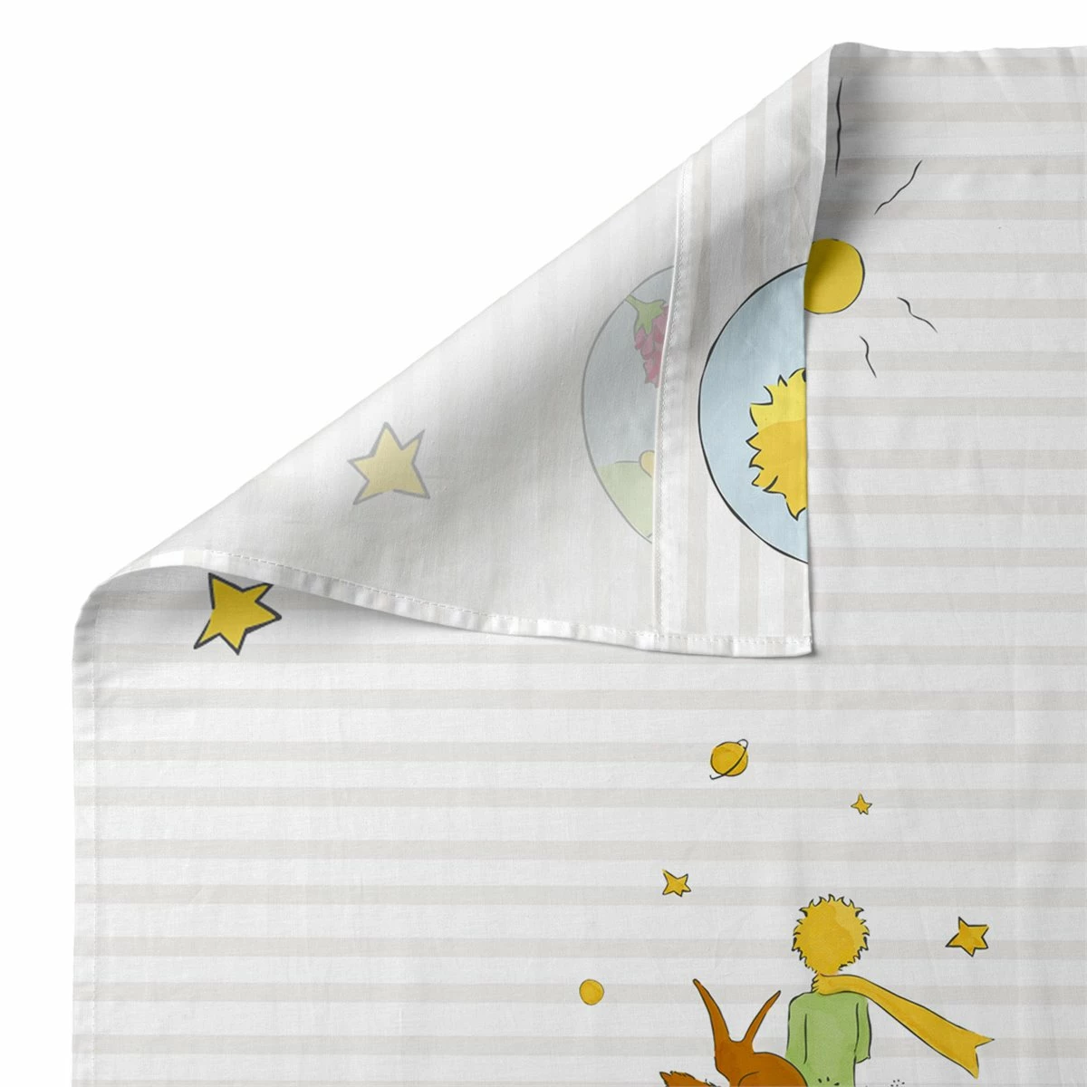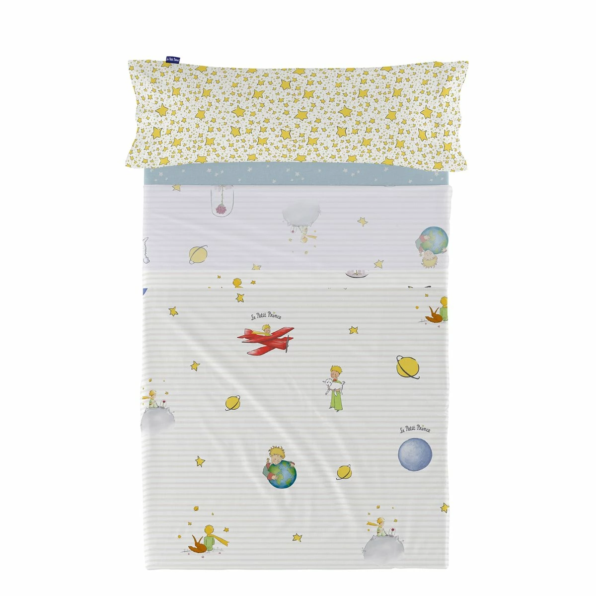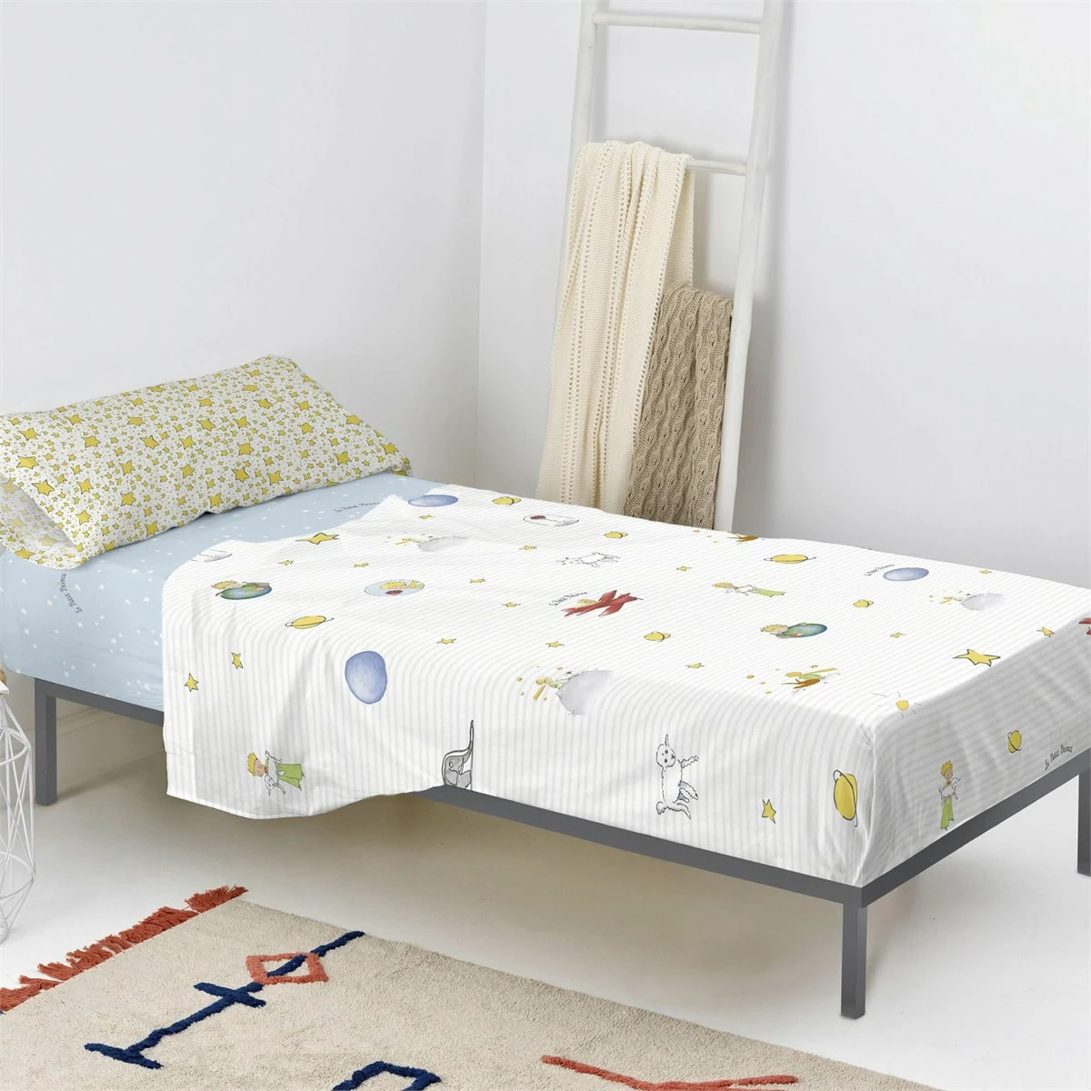 Usa la sábana Son Monde de la colección Le Petit Prince como referencia para sus cuentos antes de acostarse. Tu hijo no solo sabrá cómo se ve cada personaje, sino que también tendrá una noche de sueño suave y confortable.Esta sábana suave y ligera de algodón 100% viene con una funda de almohada estampada y se puede mezclar y combinar con otros productos de la misma colección.Bajera no incluidaDisponible en las siguientes tallas: * 160×270 [ Cama 90 ] (incluye funda de almohada estampada 45×110. * 180×270 [ Cama 105 ] (incluye funda de almohada estampada 45×125.