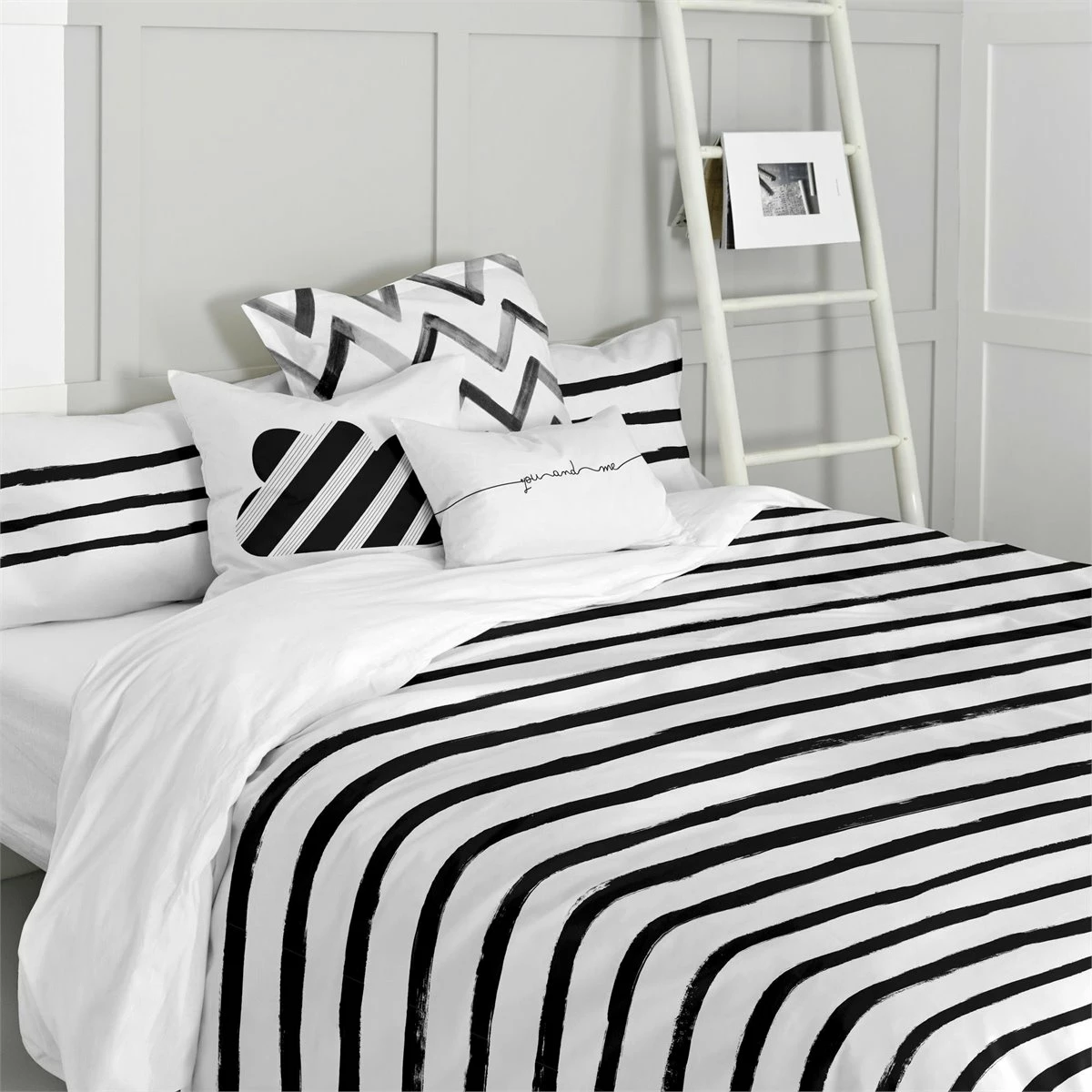 Dale a tu dormitorio un aspecto fresco, limpio e indiscutiblemente elegante con la funda nórdica Stripe. Las bandas negras de acuarela pintadas a mano le dan un toque de juventud a este diseño clásico de la colección Blanc.Siente el tacto ligero y suave del algodón 100% de 150 hilos. Esta funda nórdica está disponible en una variedad de tamaños y se puede mezclar y combinar con otros productos de la misma colección.Funda de almohada y bajera no incluidas.Disponible en las siguientes tallas: * 140×200 * 155×220 [Cama 80/90] * 180×220 [Cama 105] * 200×200 * 220×220 [Cama 135/140] * 240×220 [Cama 150/160] * 260×220 [Cama 180/200] * 260×240 [Cama 180/200]