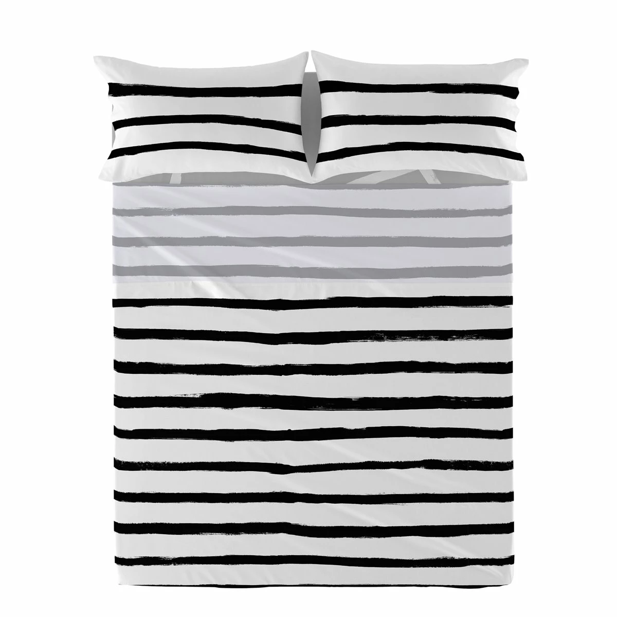El uso atemporal de las bandas en blanco y negro de la sábana Stripes de la colección Blanc se hace más atrevido y juvenil con su efecto de acuarela pintado a mano.La combinación de 100% algodón, 150 hilos y un acabado suave da como resultado un producto que ofrece una fantástica comodidad y suavidad al tacto.Funda de almohada y bajera no incluidas. Disponible en las siguientes tallas: * 160×270 [Cama 80/90] * 180×270 [Cama 105] * 210×270 [Cama 135/140] * 240×270 [Cama 150/160] * 260×270 [Cama 180/200]