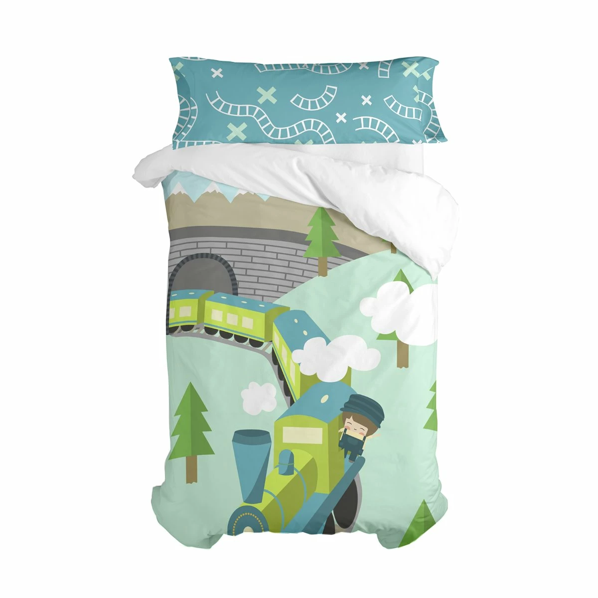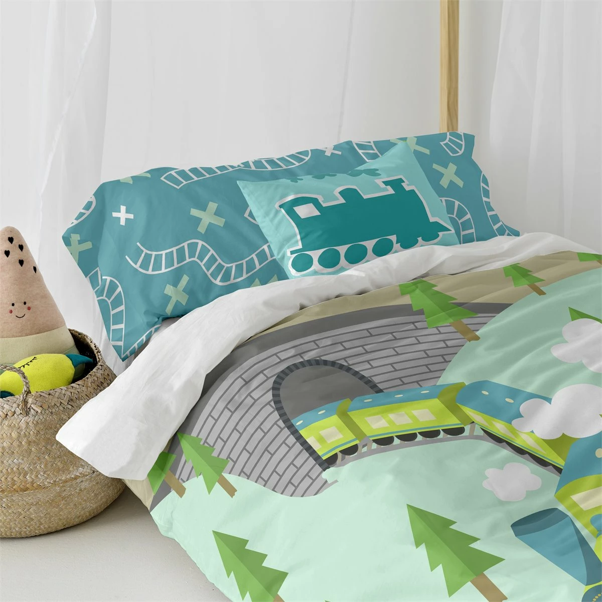 Tu hijo se sentirá parte de una emocionante aventura ferroviaria a través de hermosos campos verdes y altas montañas mientras descansa en la funda nórdica Train de la colección Happynois. ¡El destino lo eligen ellos!Deja que tu hijo sienta el tacto ligero y suave de 100% algodón de 150 hilos. Esta funda nórdica se puede mezclar y combinar con otros productos de la misma colección e incluye una bonita funda de almohada.No incluye bajera ni relleno nórdicoDisponible en las siguientes tallas: * 140×200 (incluye funda de cojín estampado 63×63. * 155×220 [ Cama 80/90 ] (incluye funda de almohada estampada 45×110. * 180×220 [ Cama 105 ] (incluye funda de almohada estampada 45×125.