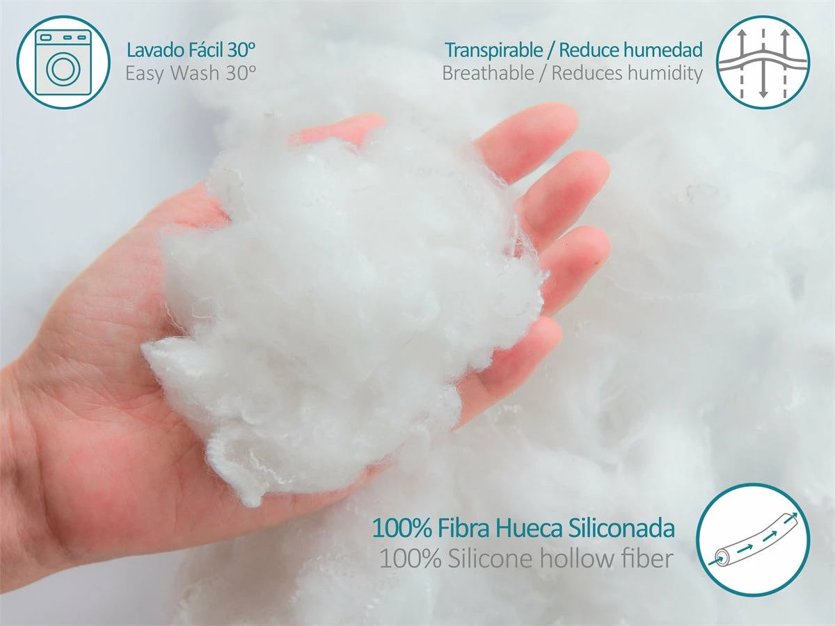 Vipalia es el acompañante ideal para tu hogar.Almohadas para un descanso placentero.Maxima calidad en acabados y materiales con la garantia de Vipalia.Nuestro objetivo es lograr la excelencia en los productos textiles que fabricamos.Nos avala una experiencia de muchos años.Esperamos que tu experiencia de compra sea lo mas satisfactoria posible. ComposicionFunda exterior de microfibra transpirable.Interior de fibra hueca siliconada.Tamaños disponiblesTodas las medidas tienen un alto de 15 cm y 40 cm de profundidad. Anchos disponibles: 70 cm, 75 cm, 80 cm, 90 cm, 105 cm, 135 cm, 150 cm.CaracteristicasCon tratamiento antihumedad. comoda, confortable, termo-regulable y transpirable.Certificado OEKO-TEX Standard 100 para control de sustancias nocivas.Hipoalergenica, antiacaros e higienica.Presentacion en bolsa transparente.Lavable en la lavadora a 30ºC. Admite secadora. Costuras, tratamiento y materiales de alta calidad.Muy resistente al desgaste y tacto muy suave efecto pluma.Fabricada en España con nuestros rigurosos controles en todo el proceso de fabricacion.