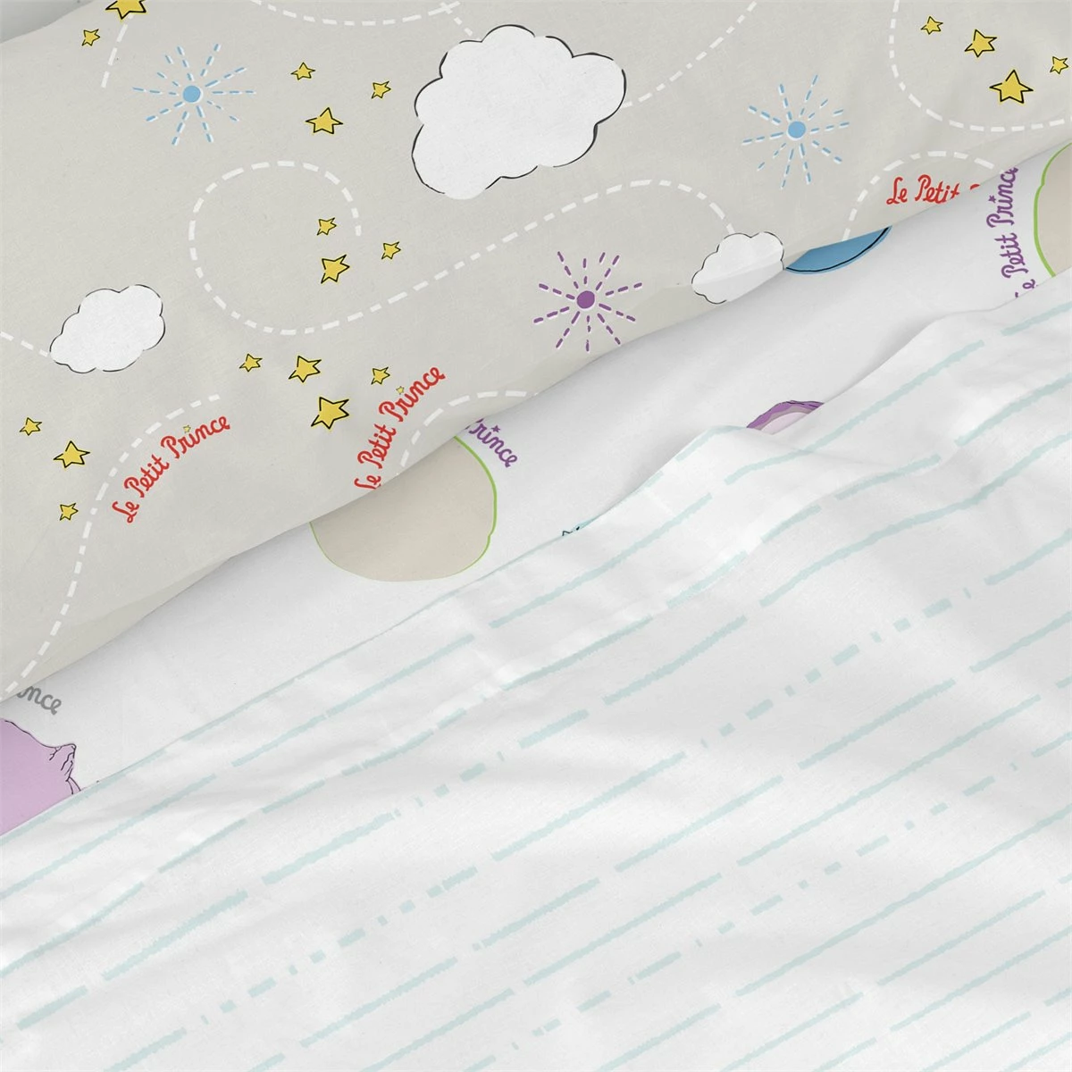 El juego de sábanas Voyageur de la colección Le Petit Prince es un cuaderno rayado en el que se dibujan las imaginativas historias de un joven príncipe. Comienza tus cuentos nocturnos siguiendo el relato de las ilustraciones, estamos seguros de que tu hijo estará faaaaasalmente dormido antes de que hayas llegado al final.Este conjunto incluye una funda de almohada decorativa y divertida que se sumará al aspecto imaginativo y aventurero. Este conjunto de algodón 100% está fabricado en España.Disponible en las siguientes tallas: * 160×270 [Cama 80/90](incluye funda de almohada 45×110. * 180×270 [Cama 105] (incluye funda de almohada 45×125.