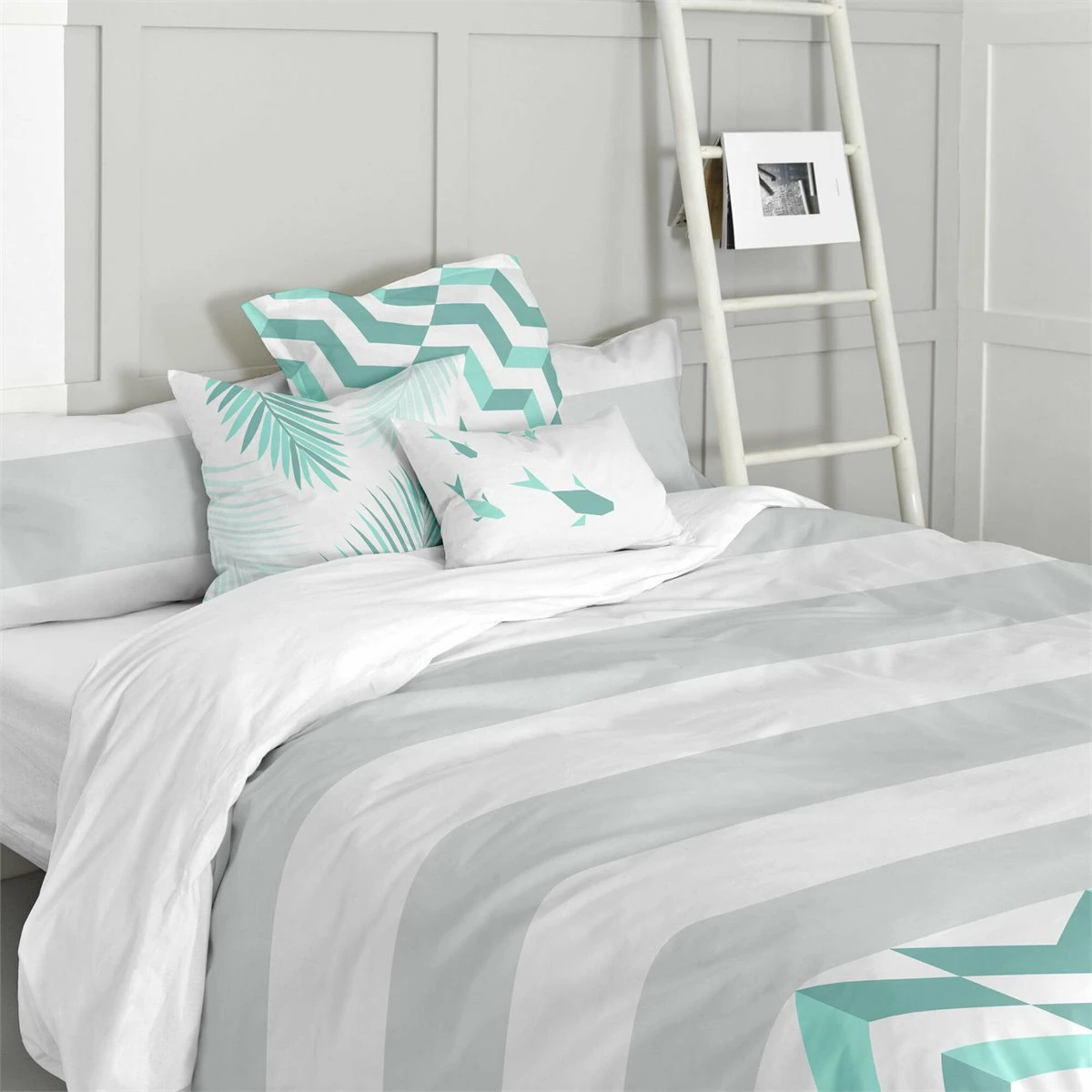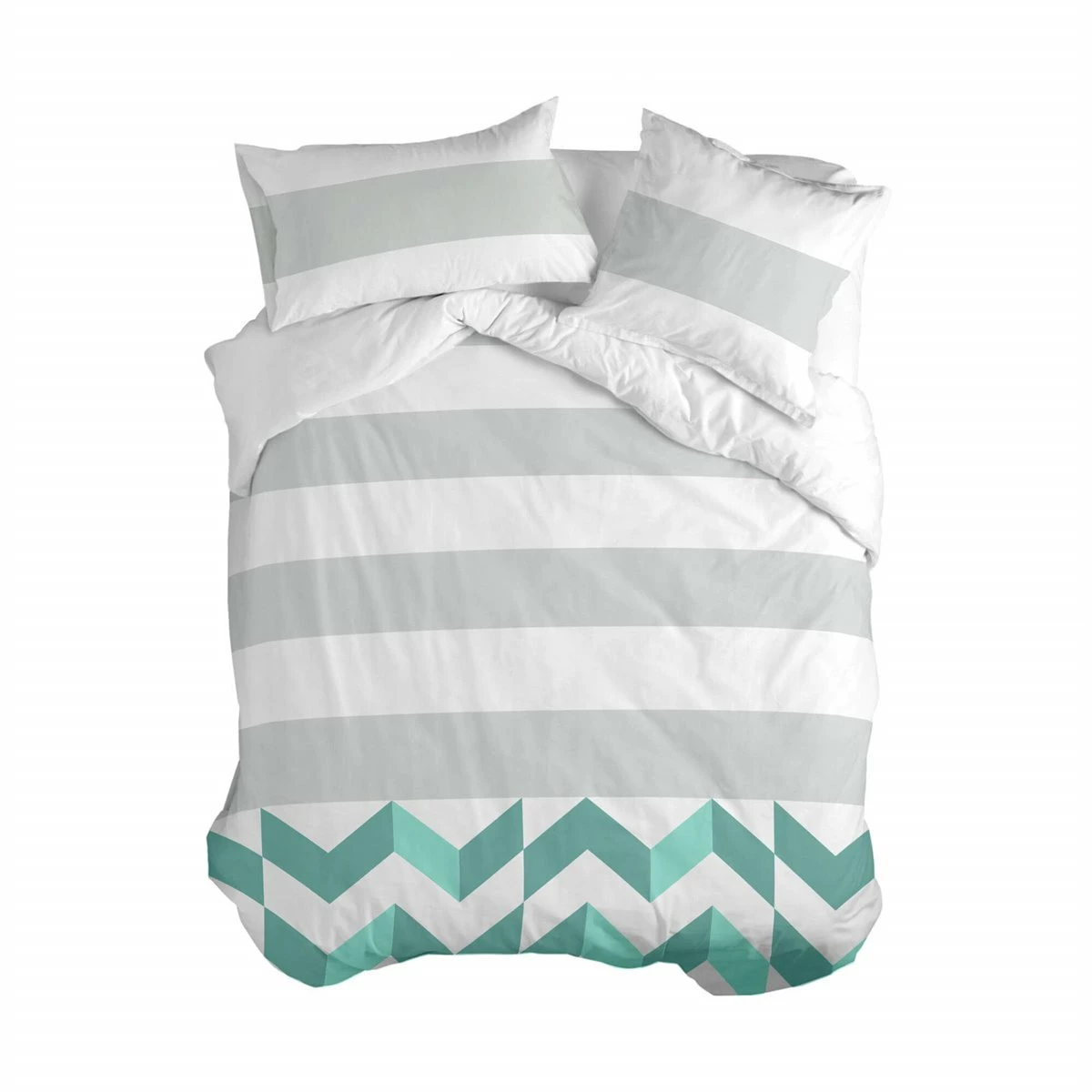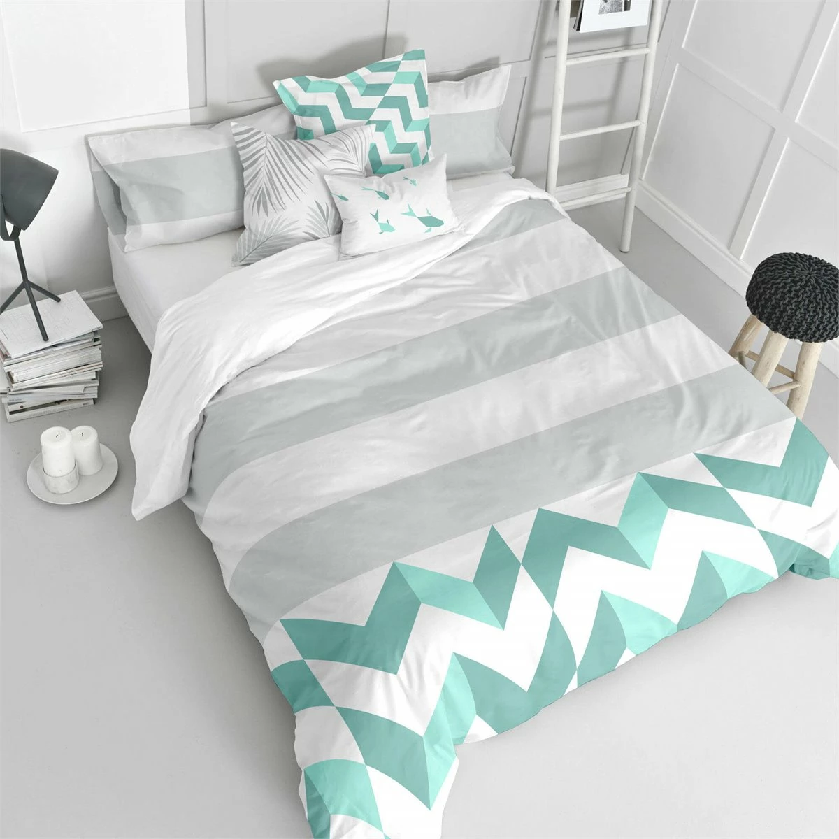 Como un océano tropical bajo un cielo de nubes, la funda nórdica Zigzag deja una sensación renovada y revitalizada. La propiedad calmante del verde azulado y el gris suave de este diseño de la colección Blanc brinda un aspecto relajado y fresco a cualquier dormitorio.Experimenta una comodidad y suavidad excepcionales bajo esta funda nórdica de algodón 100% de 150 hilos y un acabado suave. Conveniente y fácil de cambiar gracias a los cierres de plástico.Funda de almohada y bajera no incluidas.Incluye:- 1 x Funda nórdica 200×200.